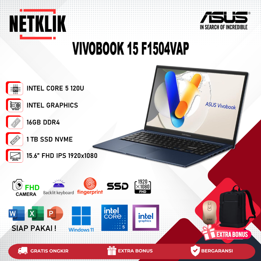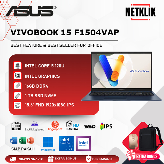 ASUS VIVOBOOK 15 F1504VAP - CORE 5 120U RAM 16GB 1TB SSD WIN11 15.6 FHD IPS Baru