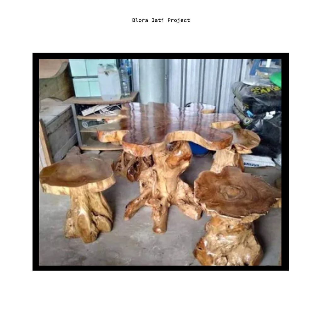Set Meja Unik Jamur Akar Jati / Meja Teras Outdoor