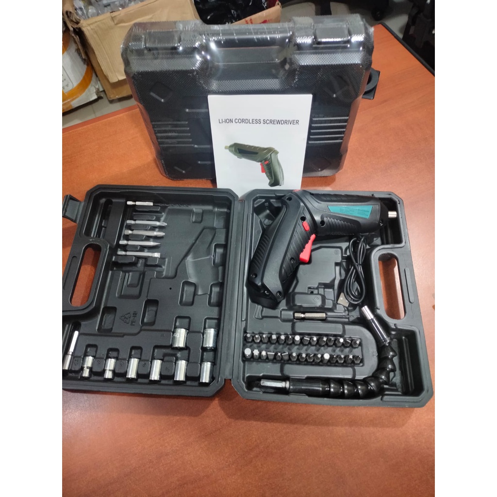 Set Mesin Bor Obeng Elektrik Cordless Screwdriver Mesin Bor Mini Obeng