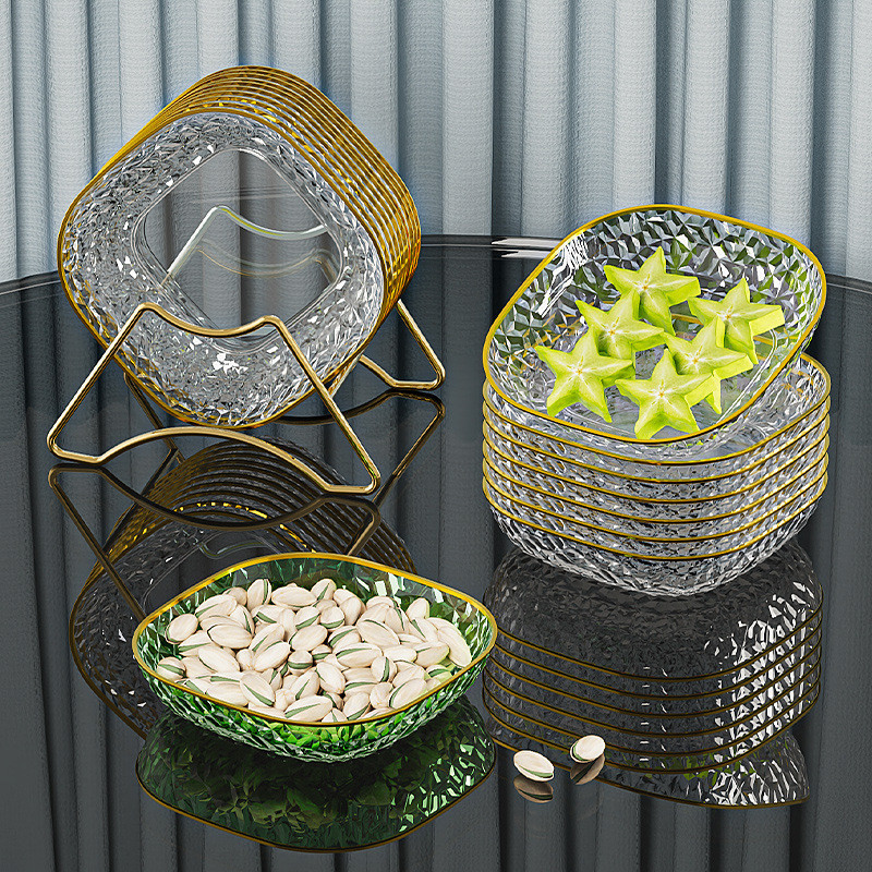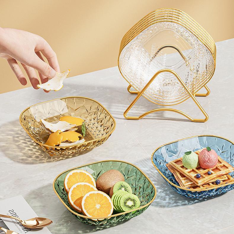 Set PET Piring Persegi / Meja Makan Dim Sum Piring / Rumah Tangga Tulang Piring Plastik / Piring Persegi/ Makanan Ringan Piring 1 Set 6 Piring + 1 Tatakan