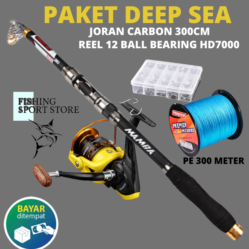 Set Pancing Joran Dan Rel Laut Joran Mamba 3 Meter Reel Seri HD7000 Bonus Benang Kail Satu Paket Siap Mancing