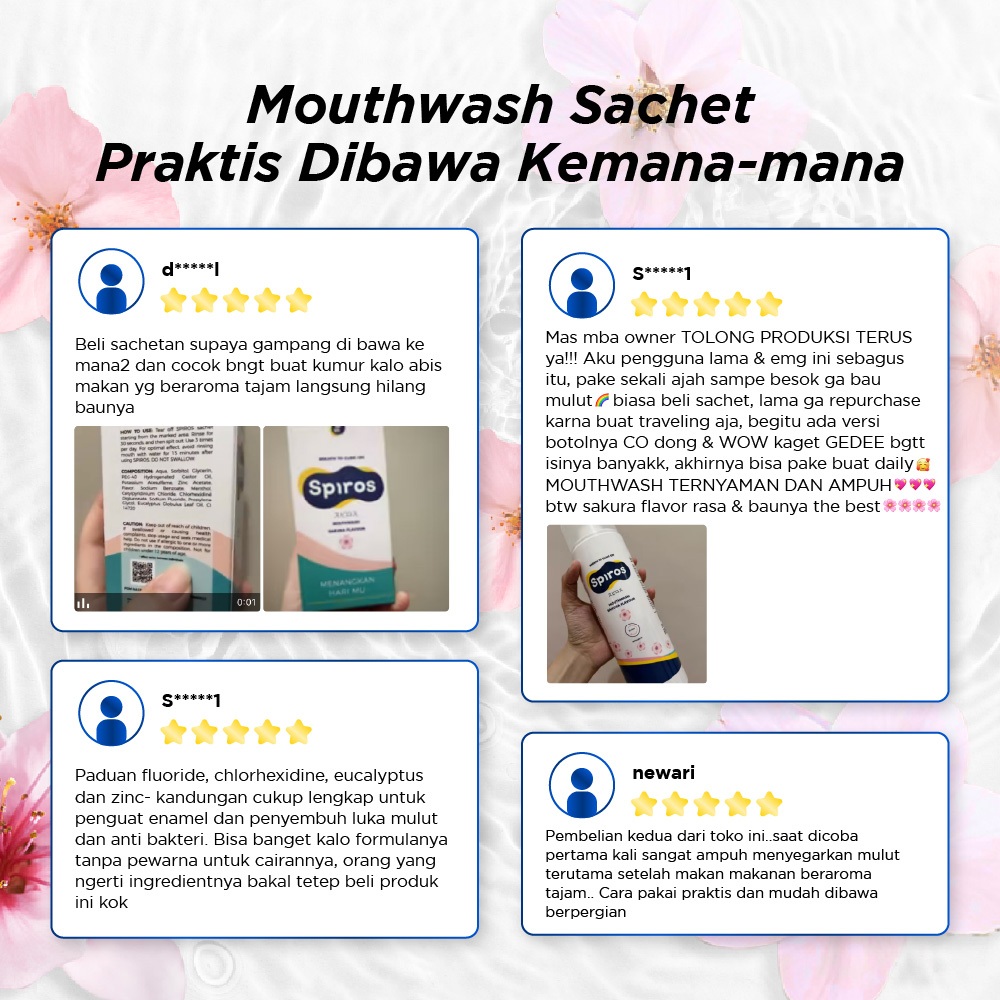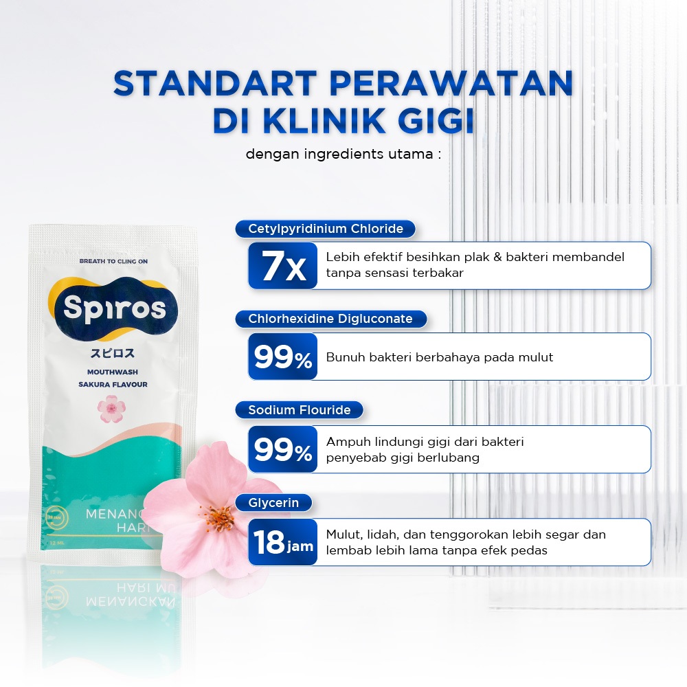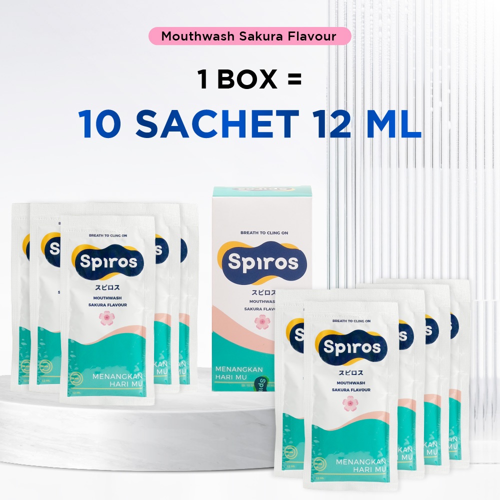 SPIROS | Mouthwash Sachet Sakura 12ml isi 10pcs | Angkat Plak | Obat Kumur Penghilang Bau Mulut | Nafas Segar Seharian
