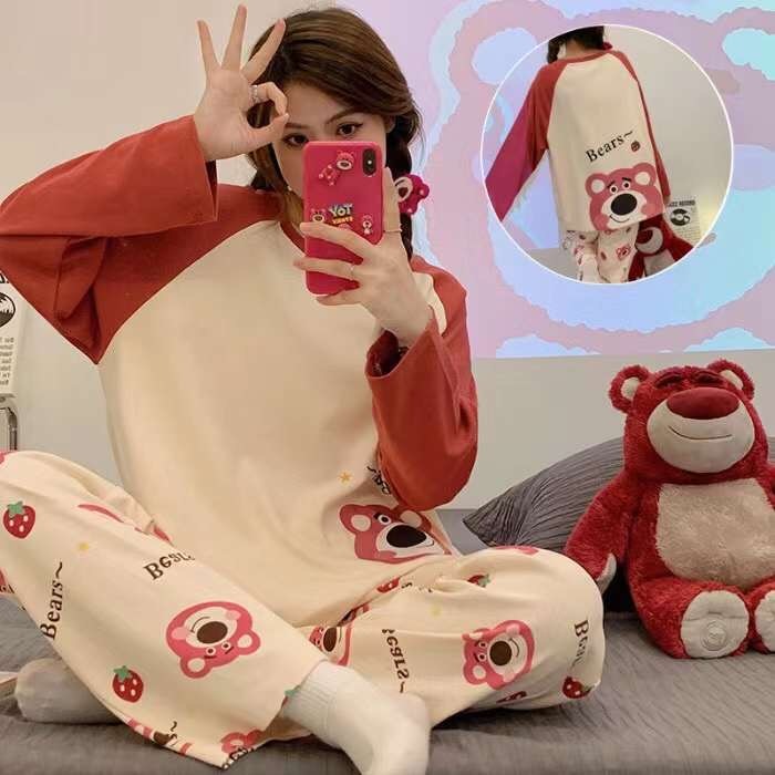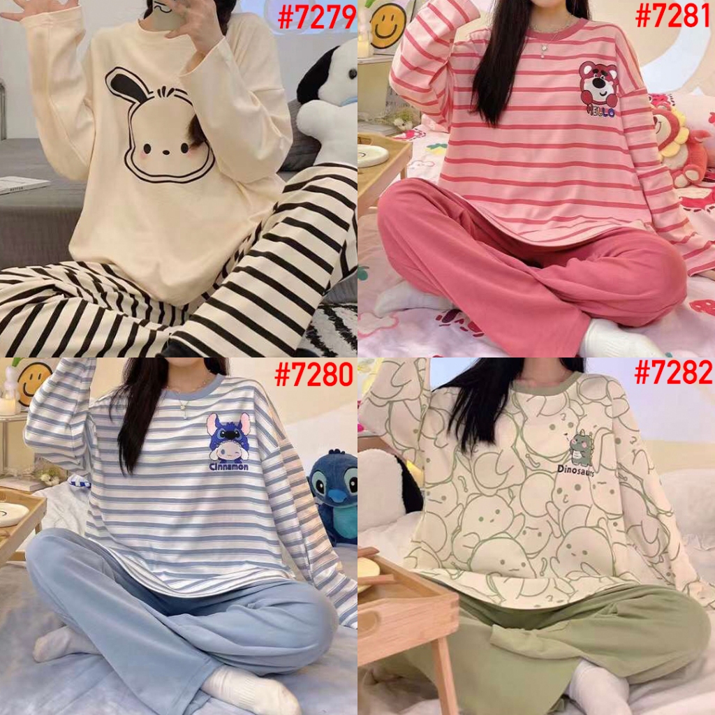 Set Piyama SUPER JUMBO LD 120 Korea PP Baju Tidur Wanita Import Piama Karakter Spandek Setelan Lengan Panjang Celana Panjang