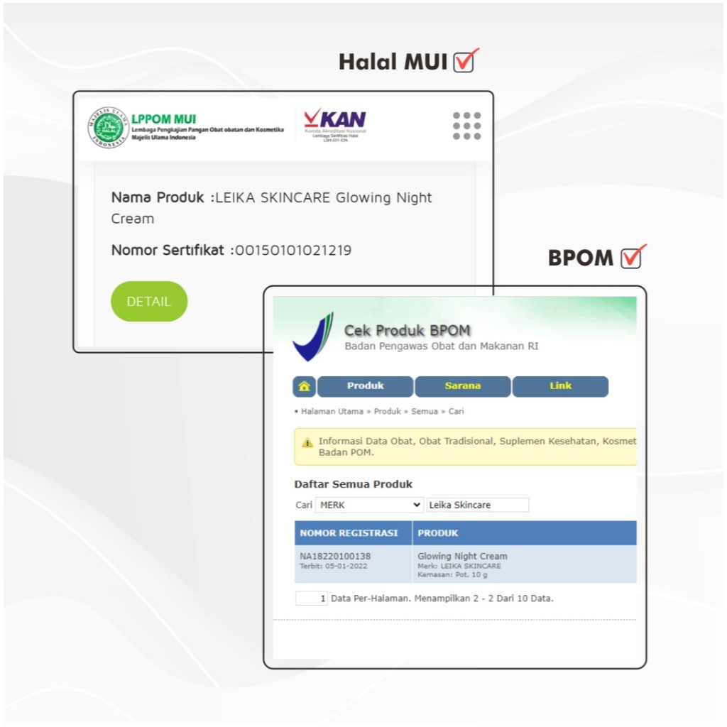 Leika Skincare Glowing Night Cream BPOM & Halal MUI