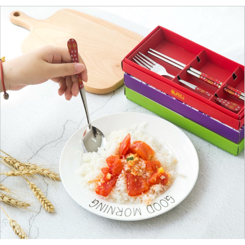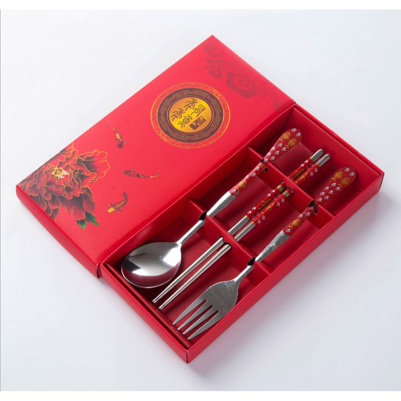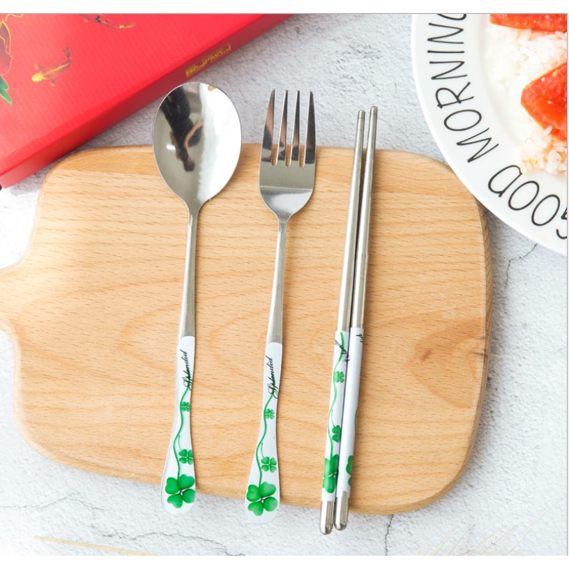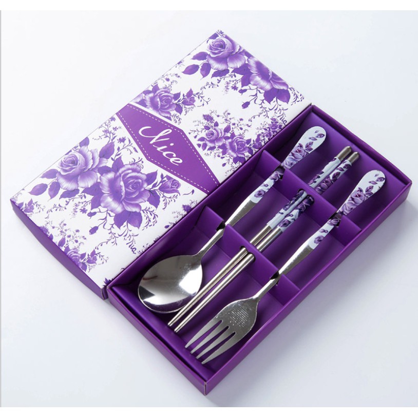 Set Sendok Makan 3 in 1 Garpu Sumpit Stainless Steel Hadiah Souvenir