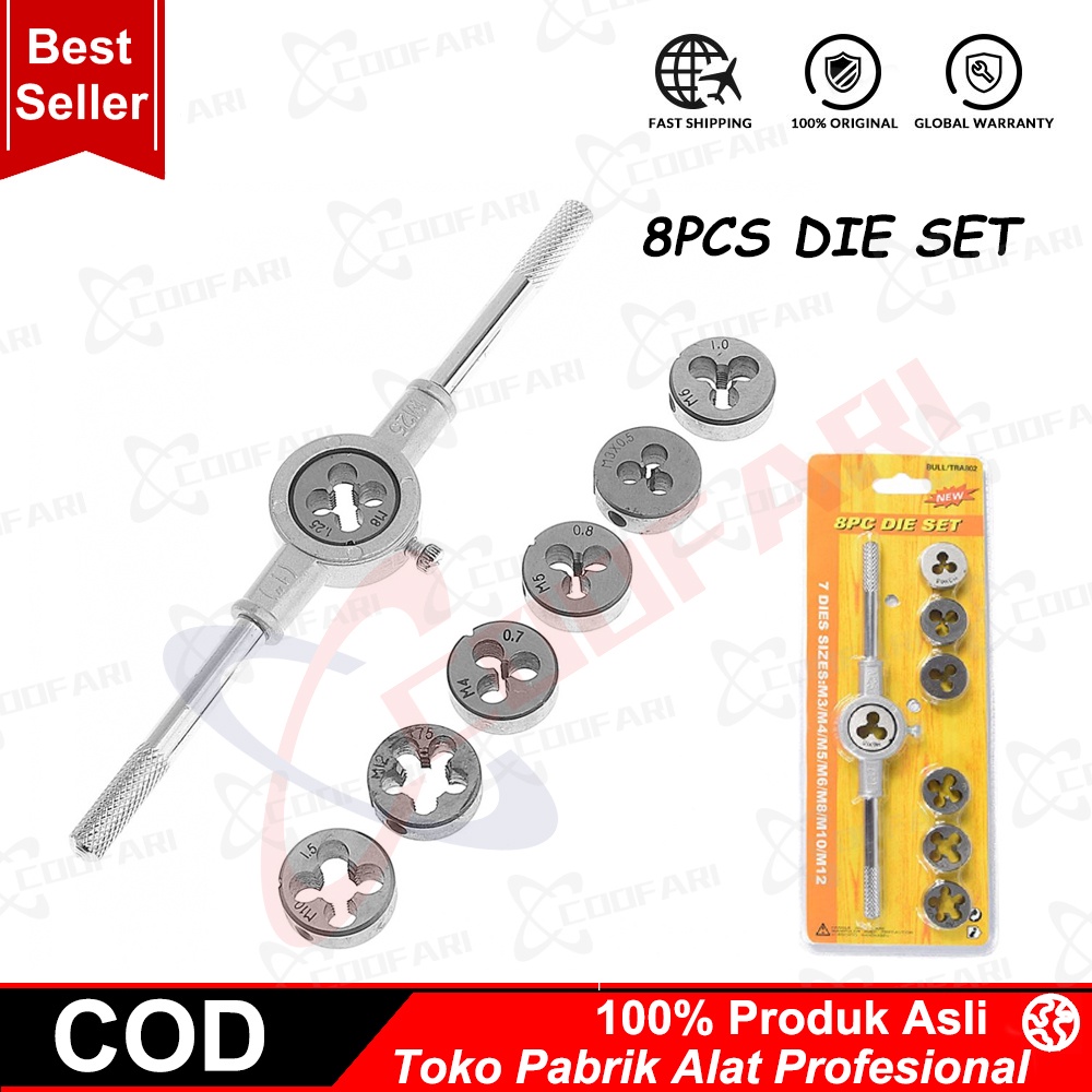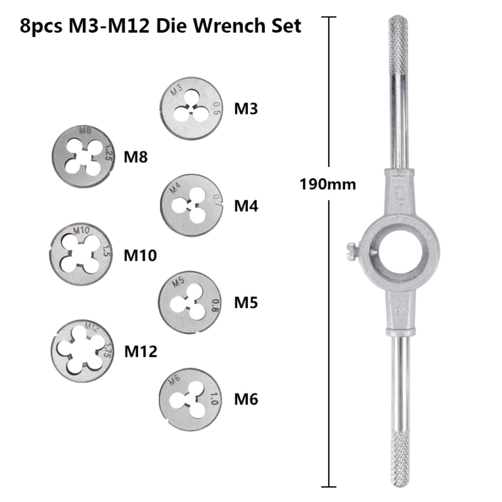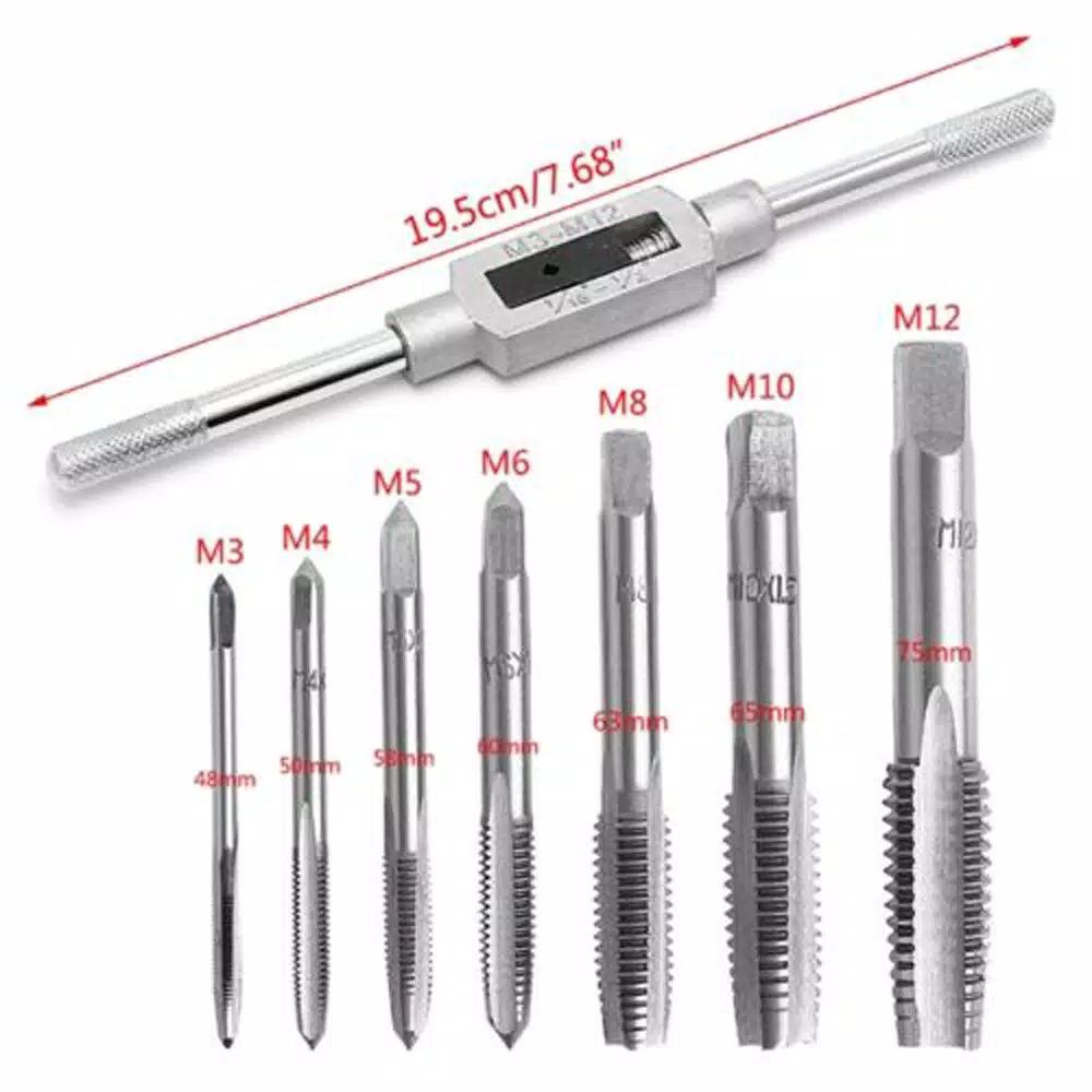 Set Tap Die Alat Metrik Terlaris Alat Pembuat Drat Metric Hand Tap Set M3-M12 Adjustable 8Pcs