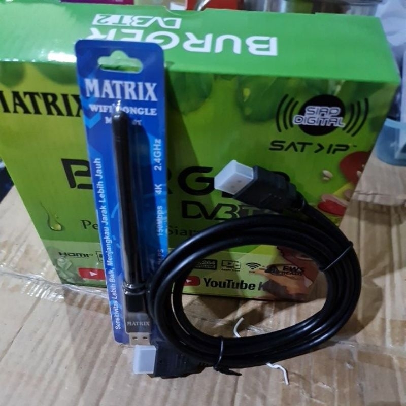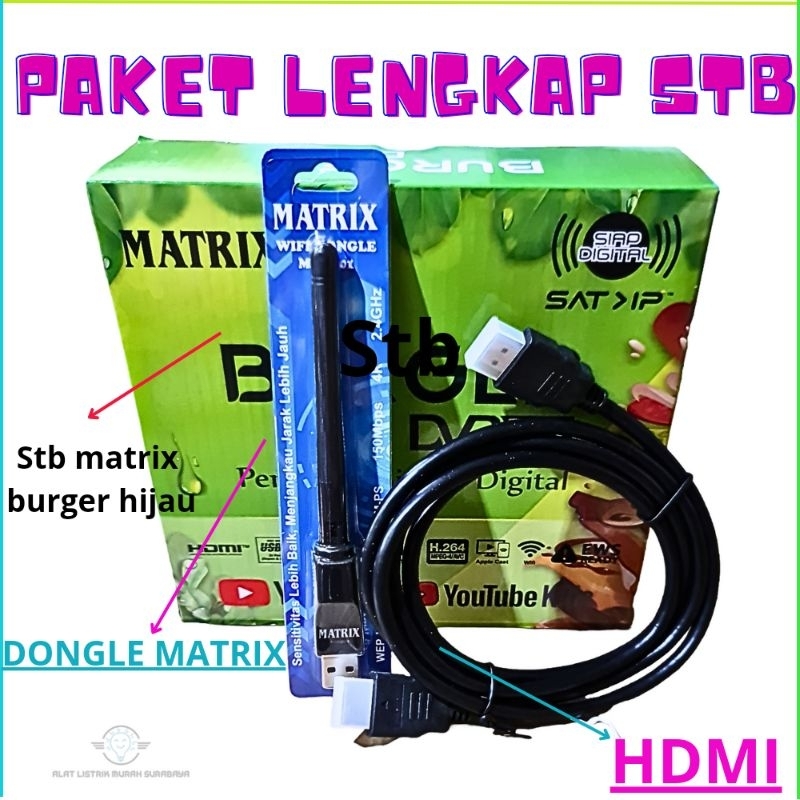 Set Top Box MATRIX Burger Hijau Paket Lengkap sudah termasuk DONGLE+HDMI
