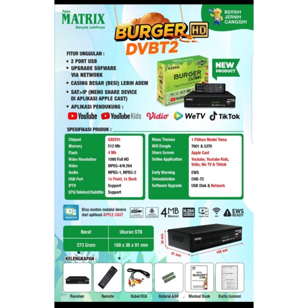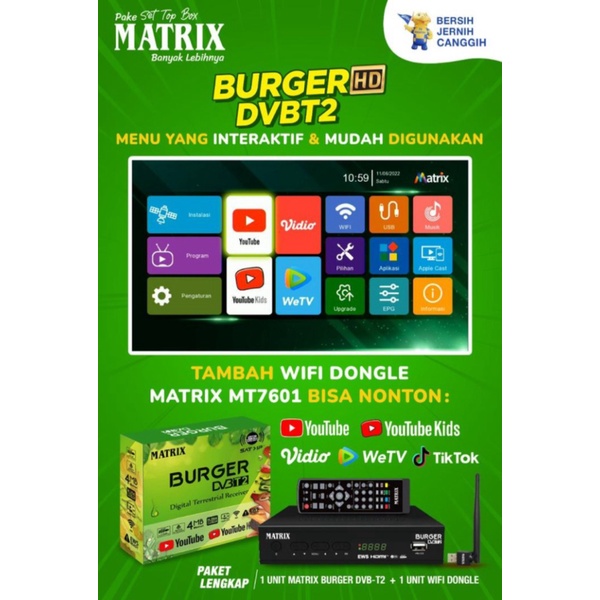 Set Top Box Matrix Burger Hijau / STB DVB T2 HD / Set Box TV Digital - Matrix BIRU KabelRCA Promo