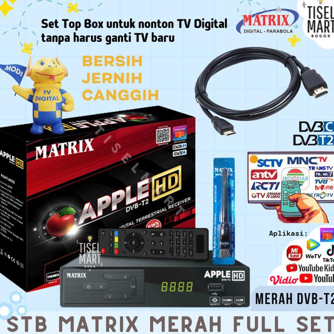 Set Top Box TV Digital MATRIX APPLE HD Receiver TV DVB T2 Red UHF STB