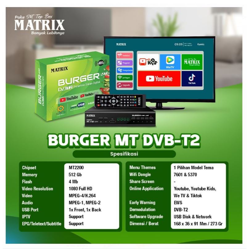 Set Top Box TV Digital Matrix Burger Hijau DVBT2 Matrix Apple Kuning / Set Box TV Digital Matrix Kuning / set box tv digital / box tv digital / set top box tv tabung