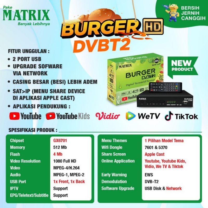 Set Top Box TV Digital Matrix Burger MT HD DVB-T2