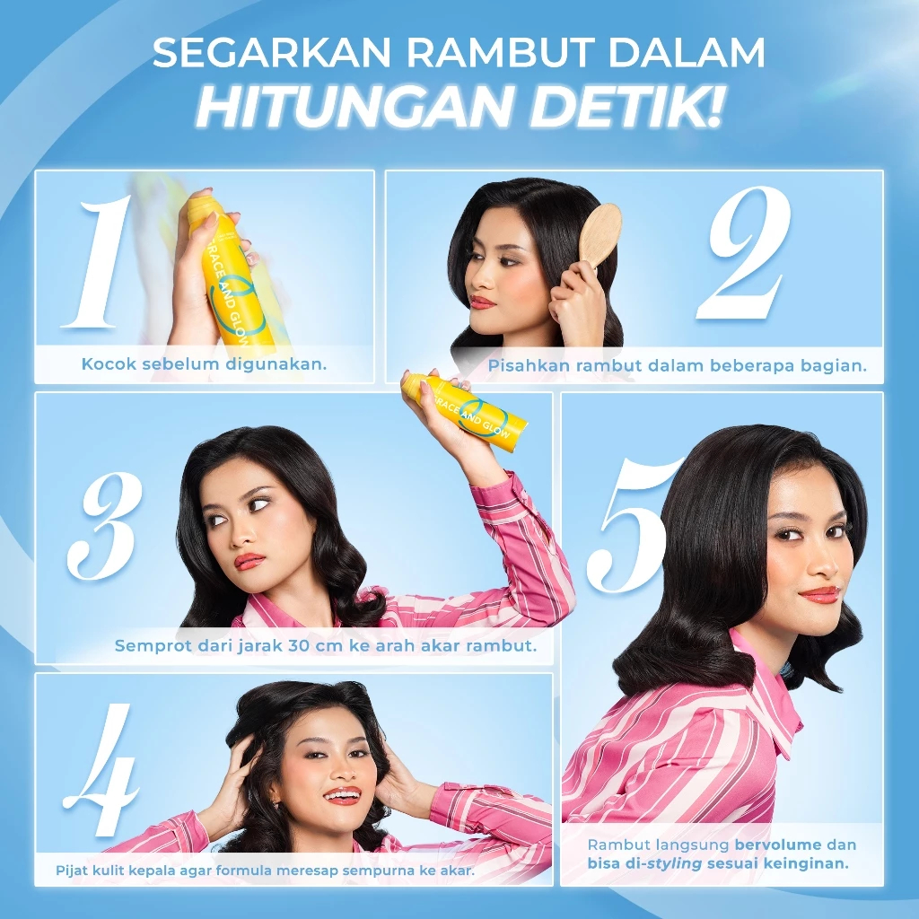 Grace and Glow Dry Shampoo Instant Hair Refresh Daisy & Velvet Breeze | Shampoo Kering Tanpa Bilas Hair Spray Semprotan Rambut