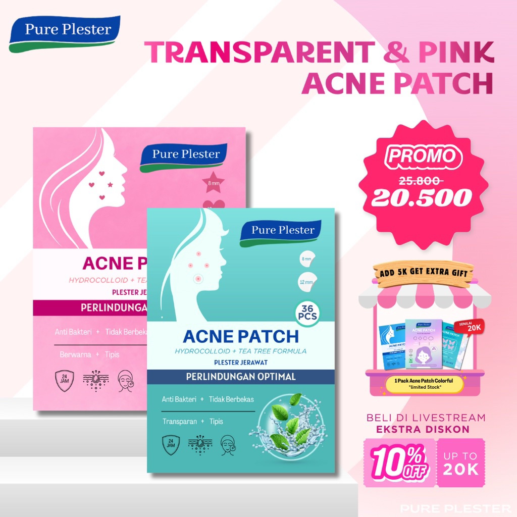 Plester Jerawat Paket 2 | Bening + Pink Hati Bintang | Hydrocolloid Tea Tree Redakan Jerawat Harian