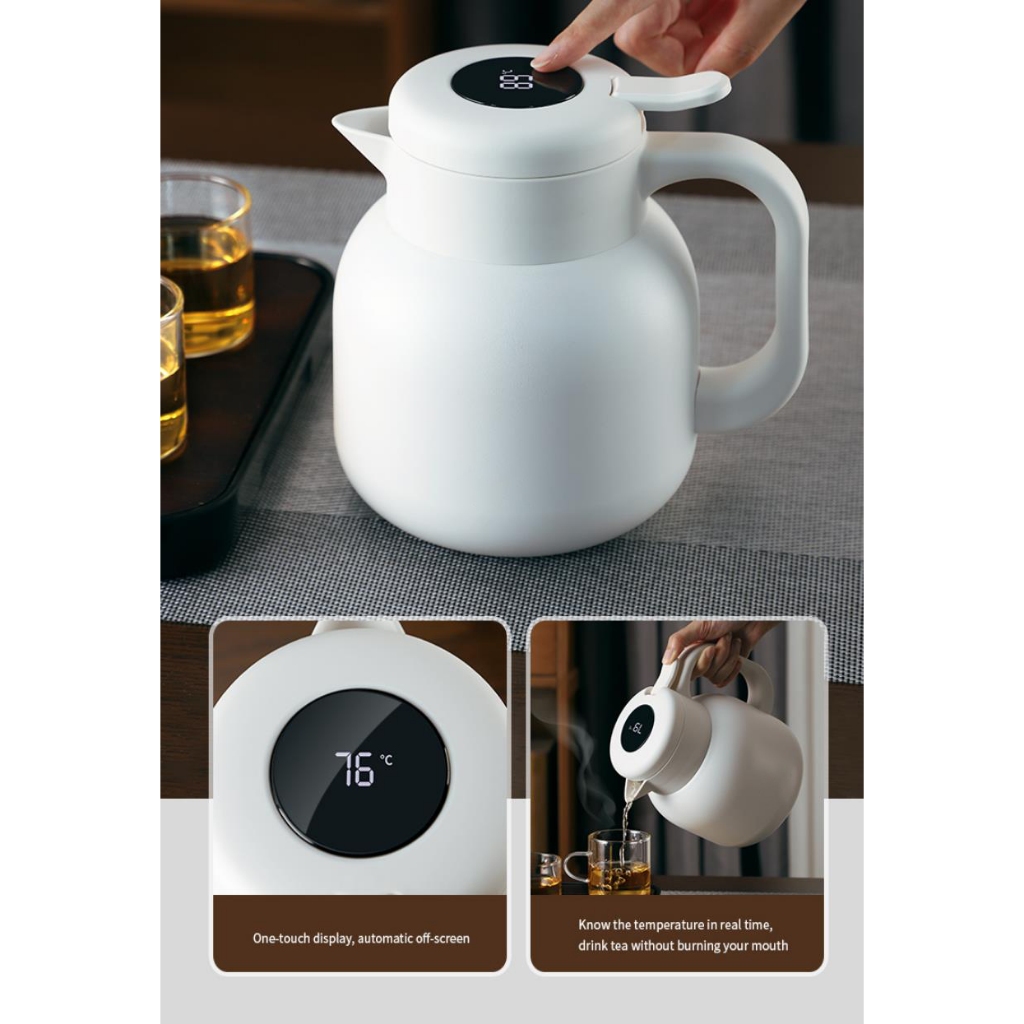 Termos Teko Temperature Digital Milk Jug Water Coffee Pot Thermos Teko Air Panas Gagang 316 Stainless Steel Liner 24 jam Isolasi 1L/1.5L/2L