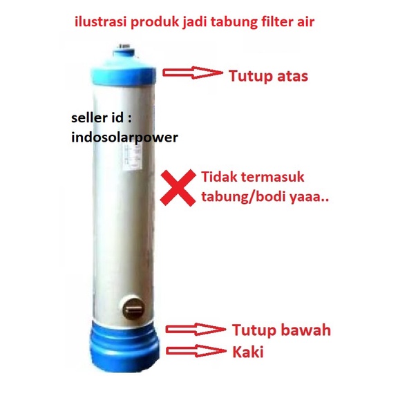 Set kaki + dop atas + dop bawah 8" 8 in inci inch tabung filter PVC air isi ulang galon tutup kaki dudukan depot air mineral
