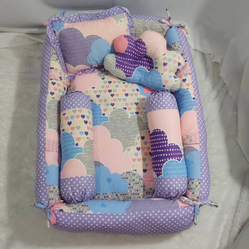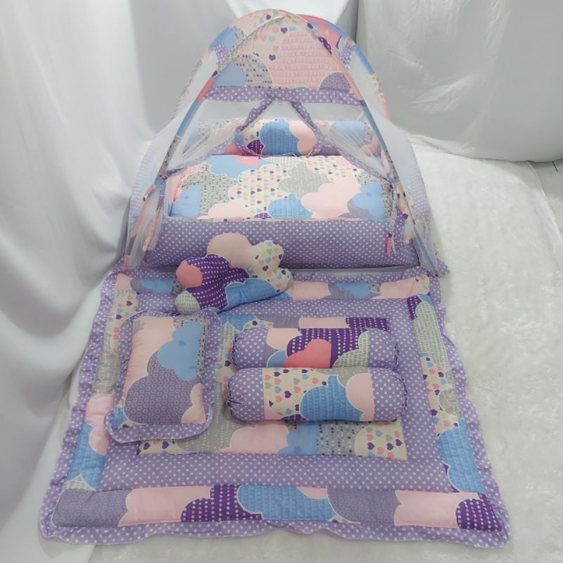 Set kasur bayi dan kelambu bayi dan beddingset bayi motif cloud dream ungu , perlengkapan tidur bayi