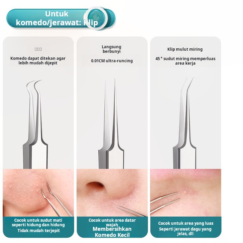 Set klip sel jarum jerawat super tajam, pinset ultra-halus, alat kecantikan jarum komedo jerawat