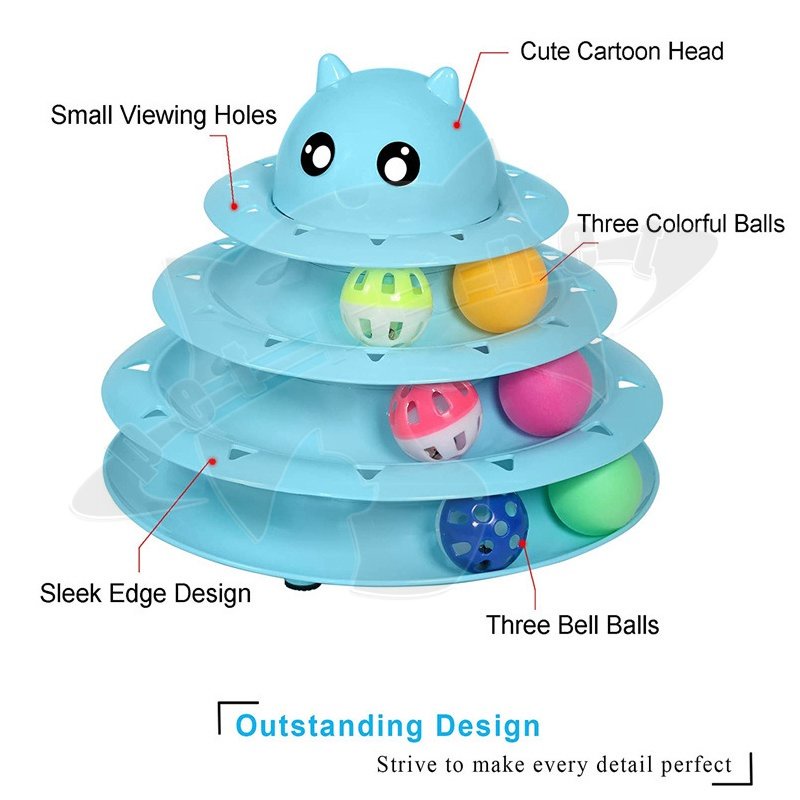 Set mainan kucing peliharaan meja putar kucing Menara Mainan Kucing Mainan Tower Track Bola Untuk Kucing 3 Tingkat Bola Putar Circular Play Toy Mainan Tingkat Bola Kucing