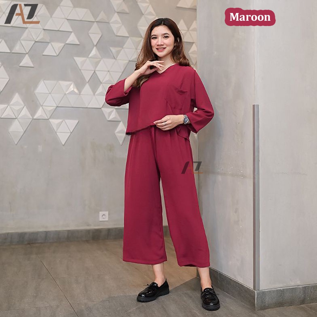 Setcel Sania Baju One Set Wanita Crop Crinkle Premium Polos / Setelan Wanita Kekinian Lengan Panjang Celana Kulot Highwaist Oneset Remaja Dewasa Crinkle Crincle Premium Jumbo