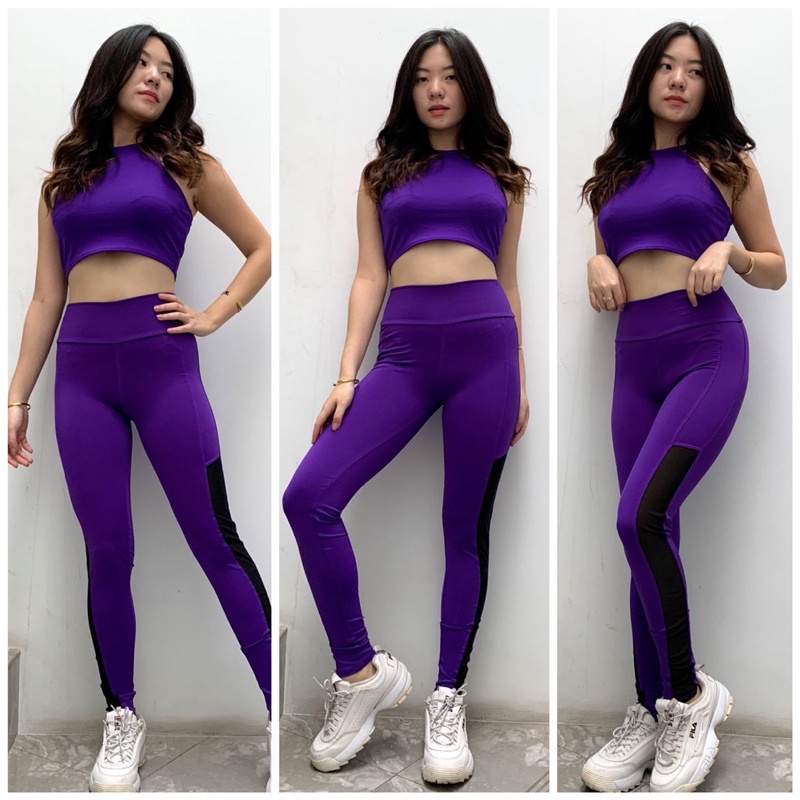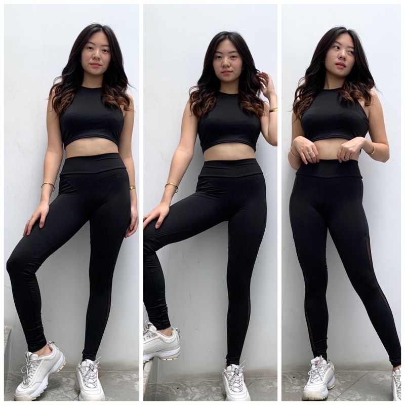 Setelan (11 warna) senam gym aerobik fitness model Crop Key-Legging tile panjang