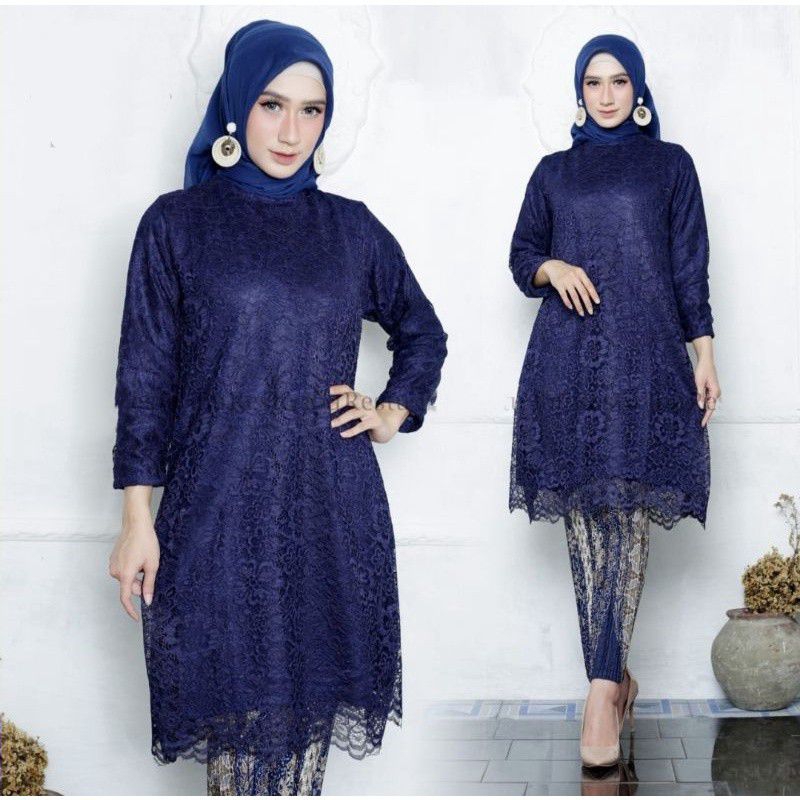 Setelan Baju Couple Kebaya Sarimbit Tunik Busui Modern Set Kemeja Batik Pria Motif SR Navy / Setelan Kebaya Biru Dongker / Kebaya Warna Biru Navy