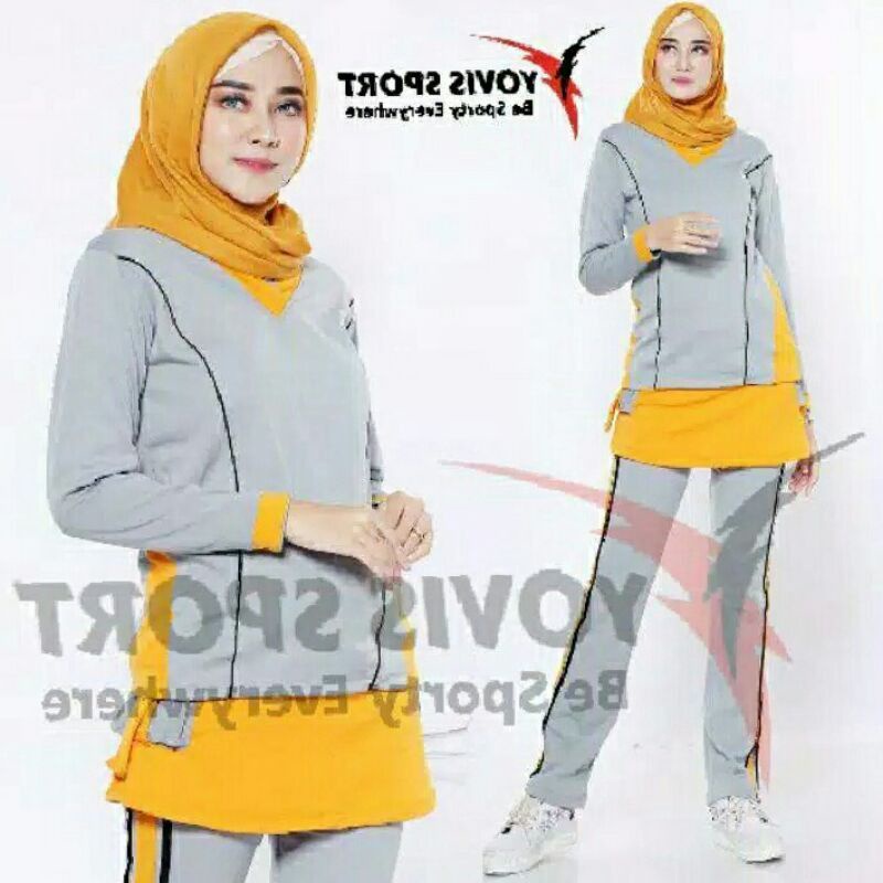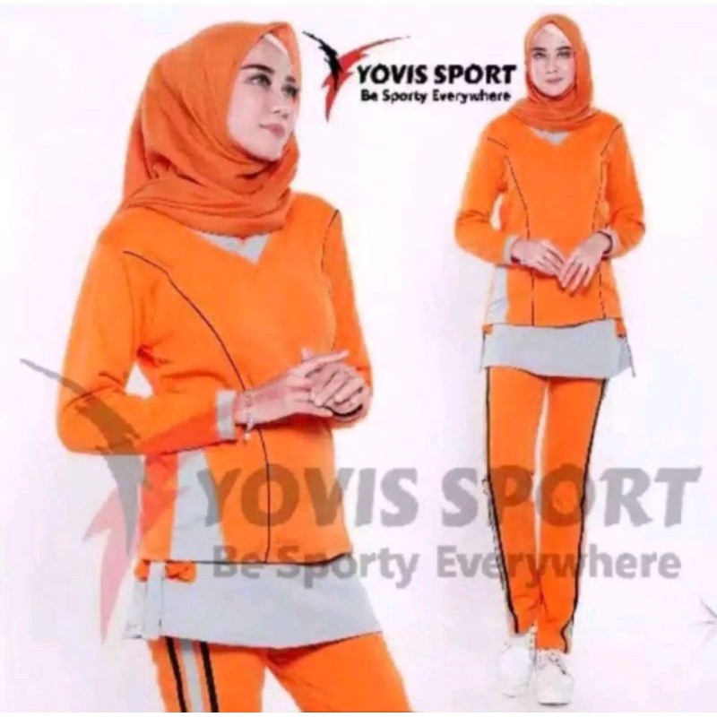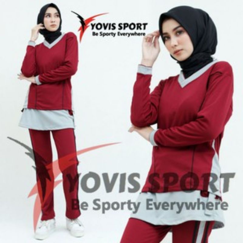 Setelan Baju Senam Olahraga Wanita Aerobic Muslim Zumba Terbaru Merah Putih Yovis Sport Kekinian