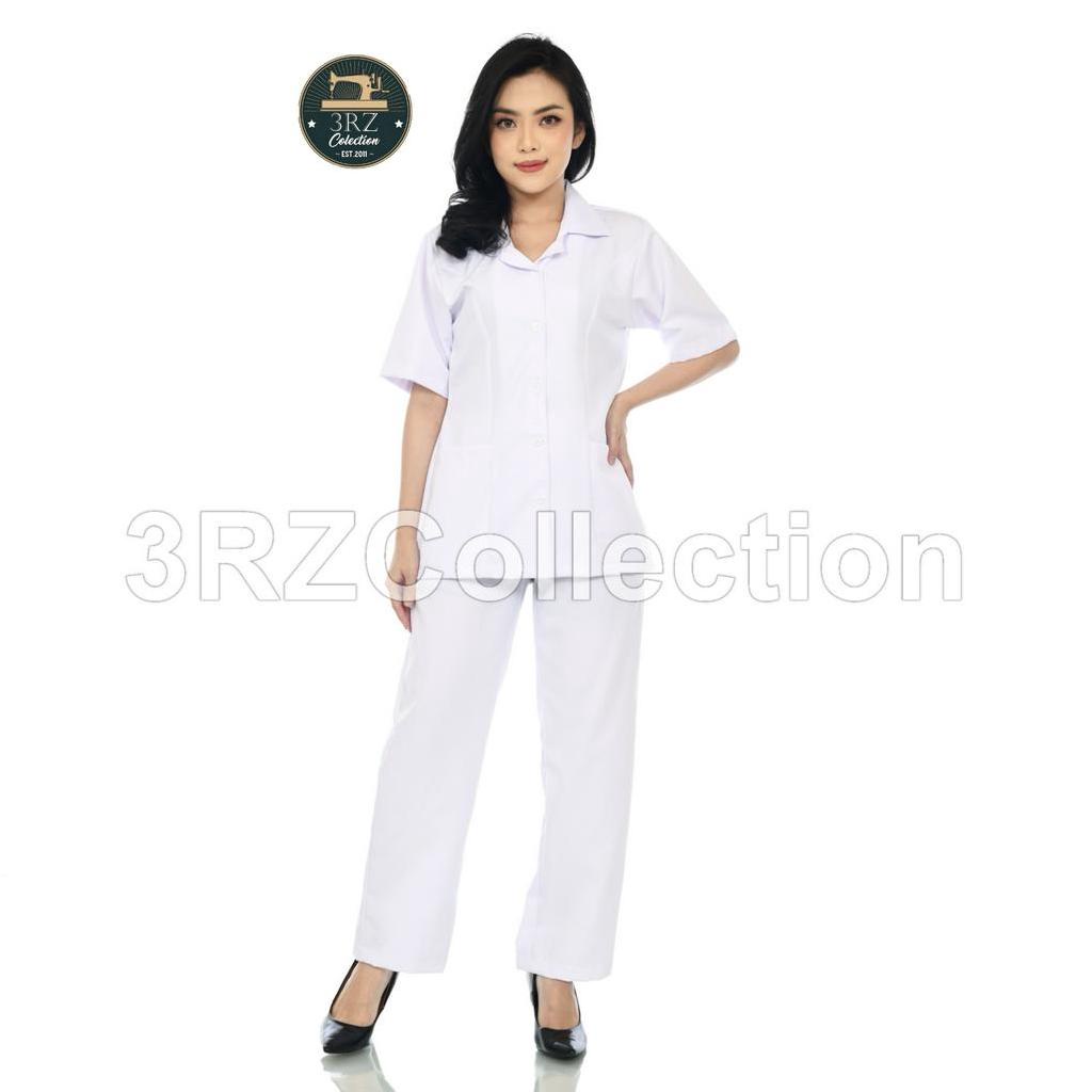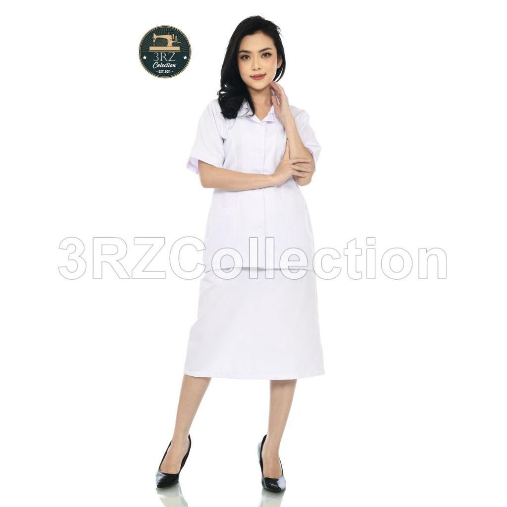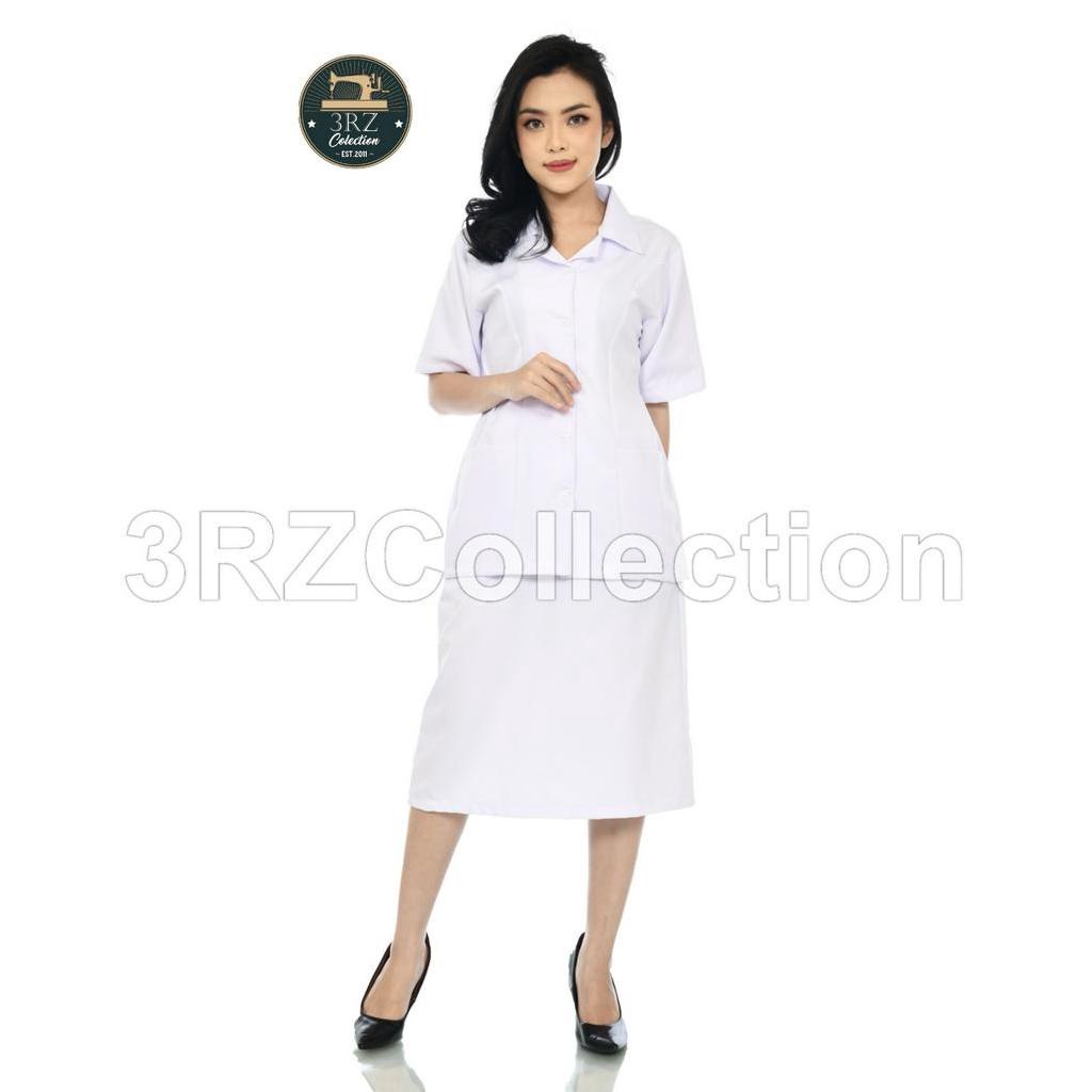 Setelan Baju Seragam Putih Perawat Bidan Mahasiswi Wanita Lengan Pendek Celana atau Rok