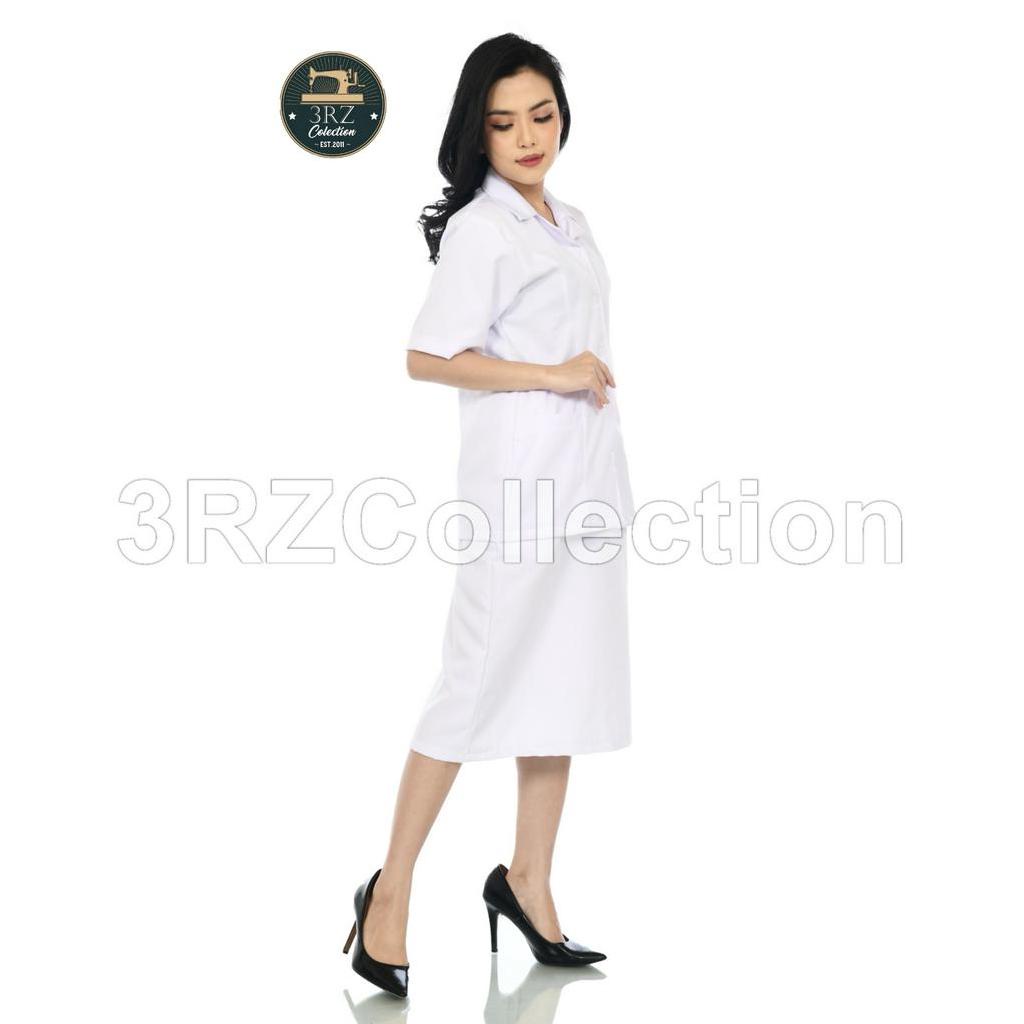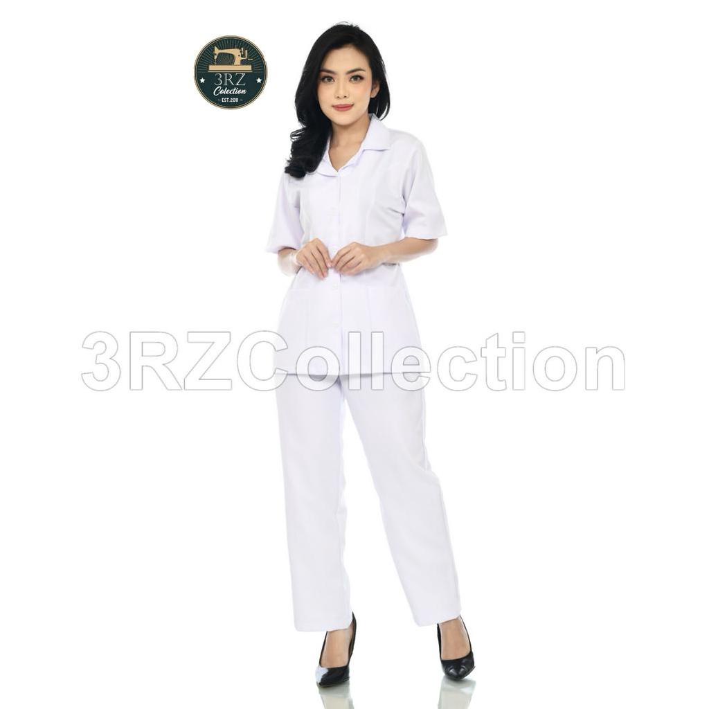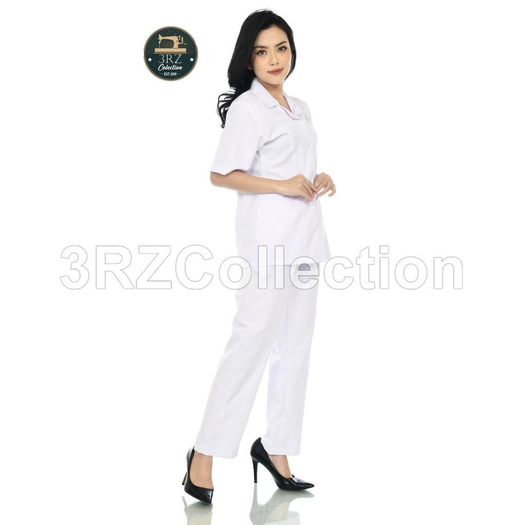 Setelan Baju Seragam Putih Perawat Bidan Mahasiswi Wanita Lengan Pendek Celana atau Rok