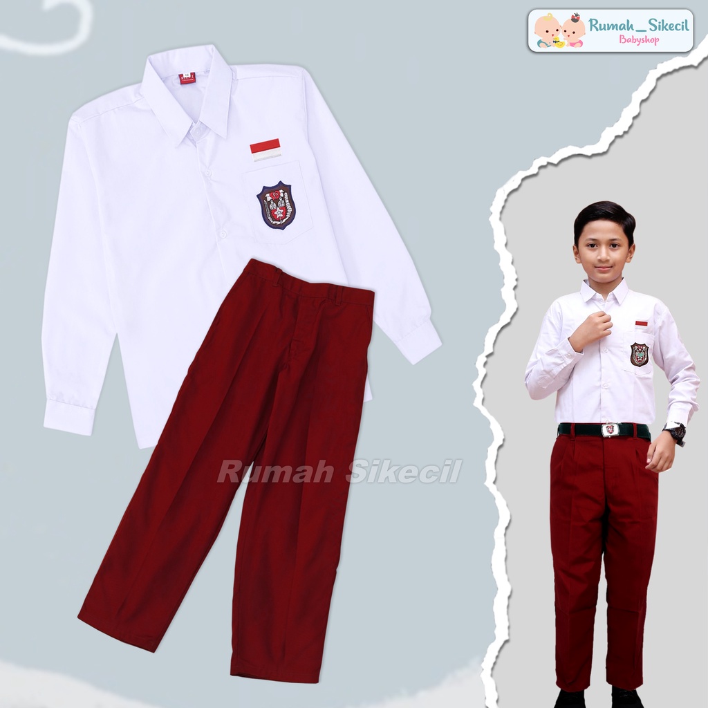 Setelan Seragam Sekolah SD Merah Putih Baju Lengan Panjang Laki Perempuan Kelas 1 2 3 4 5 6 Bahan Katun Oxford Tebal Halus Adem
