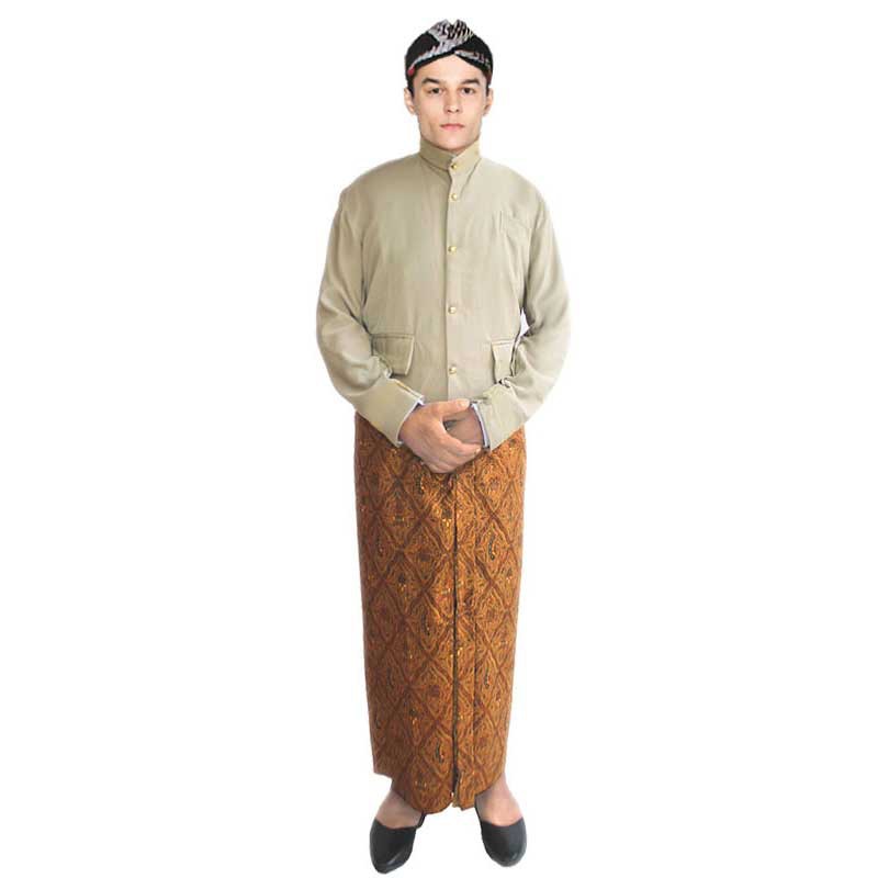Setelan Beskap Baju Adat Tradisional Jawa Sikepan Warna Krem Cream