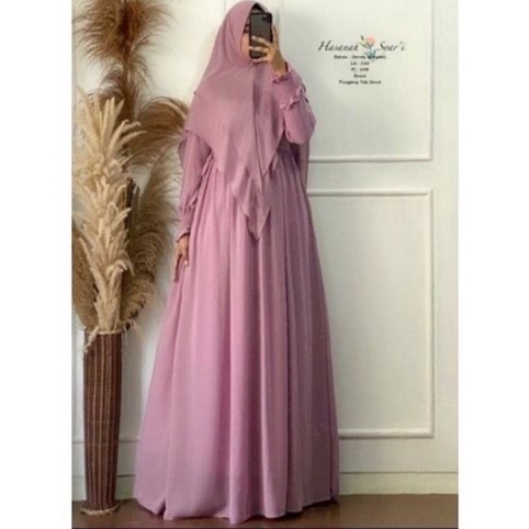 Setelan Gamis Hassanah Plus Hijab 2 Layer Bahan Certty Premium - Gamis Baju Muslim Wanita Syar'i untuk Lebaran