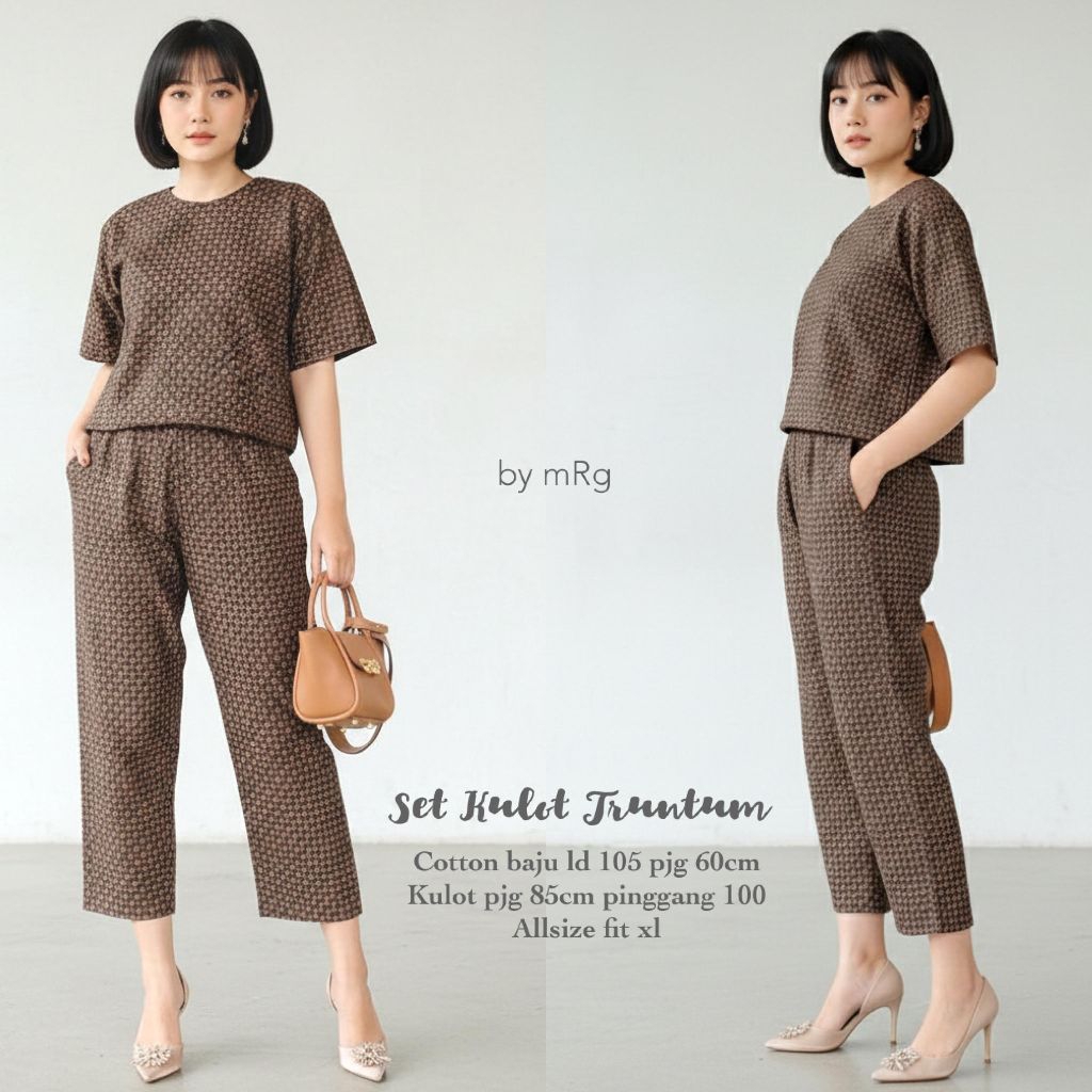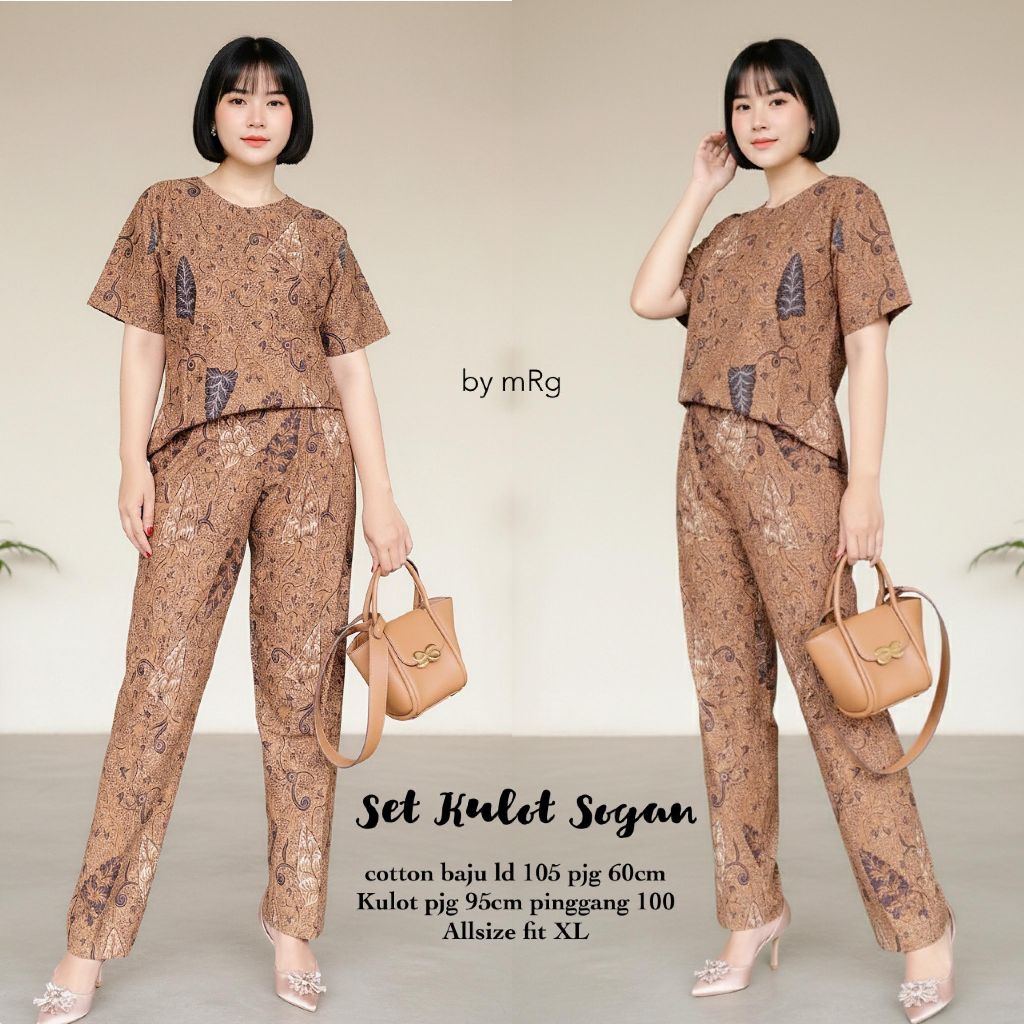 Set Kulot Wanita Batik Sogan Lengan Pendek All Size Fit XL