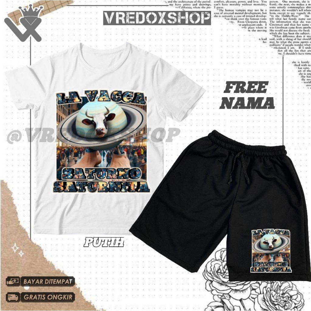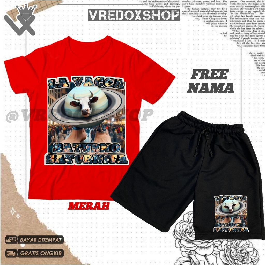 Setelan Kaos Celana Pendek Anak Motif Anomali Brainrot La Vacca Saturno Saturnita / Set Baju La Vaca Saturno Saturnita Anomali Sapi Saturnus Viral/ T-shirt Kids Pakaian Distro Fashion Anak untuk Laki-laki dan Perempuan Usia 3-12 Tahun Bisa COD / Free Nama