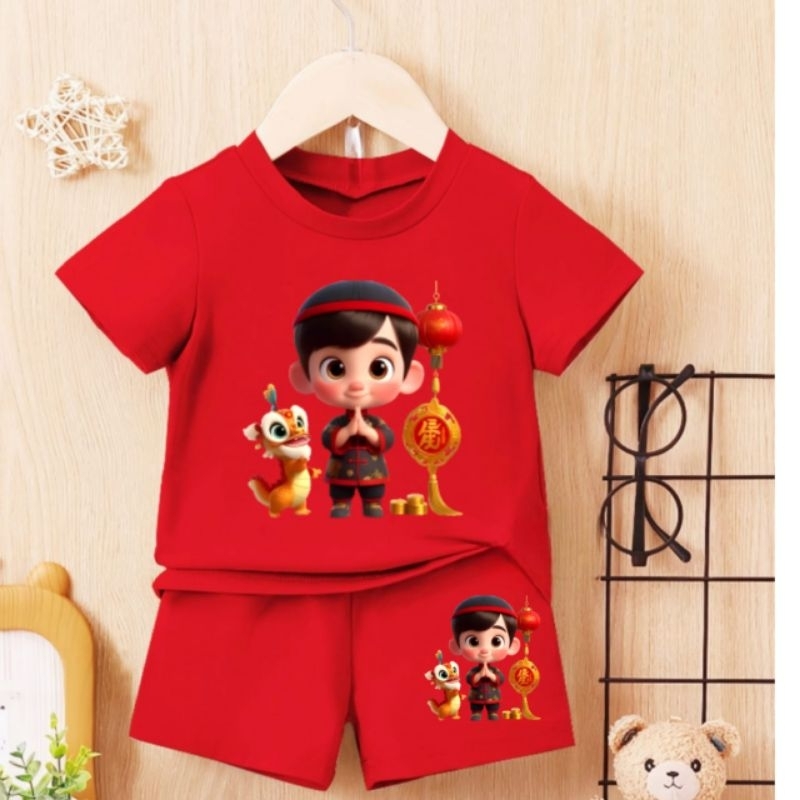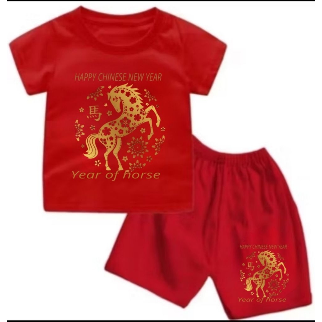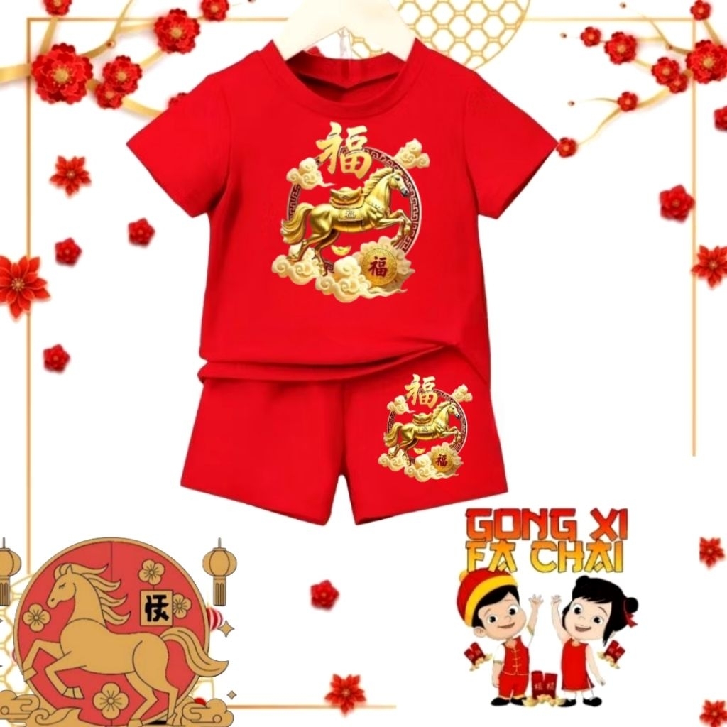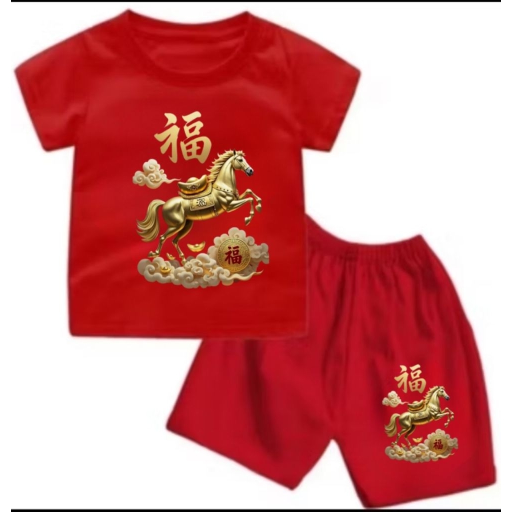 Setelan Kaos Imlek Anak Edisi Tahun Kuda/Setelan Kaos Anak Imlek 2026 year of the horse