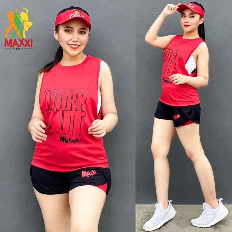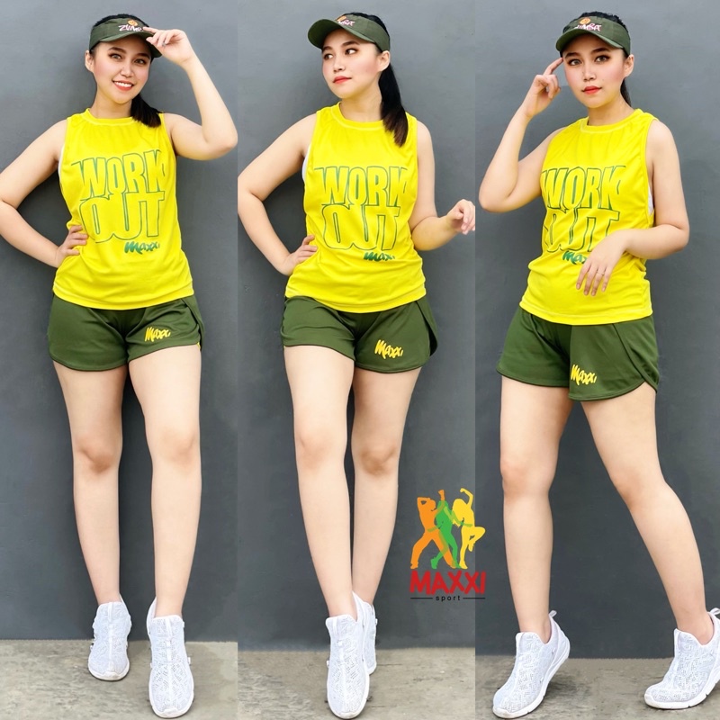 Setelan Olahraga Hotpants Tanktop Workout Pendek 2 in 1 Set Baju Senam Pendek Baju Gym Fitness Running Jogging Cycling Gowes Training Pendek Wanita