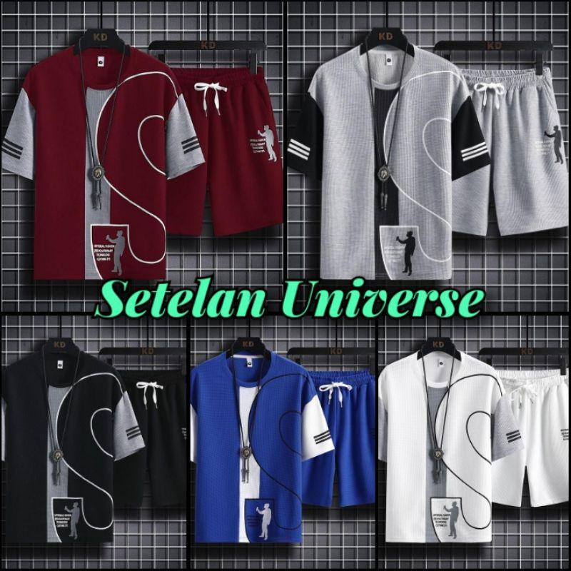 Setelan Pria 1 Set Dewasa Simple Keren Korea Style Remaja kece Baju Outfit Kekinian 2023 Kaos Celana Pendek Universe