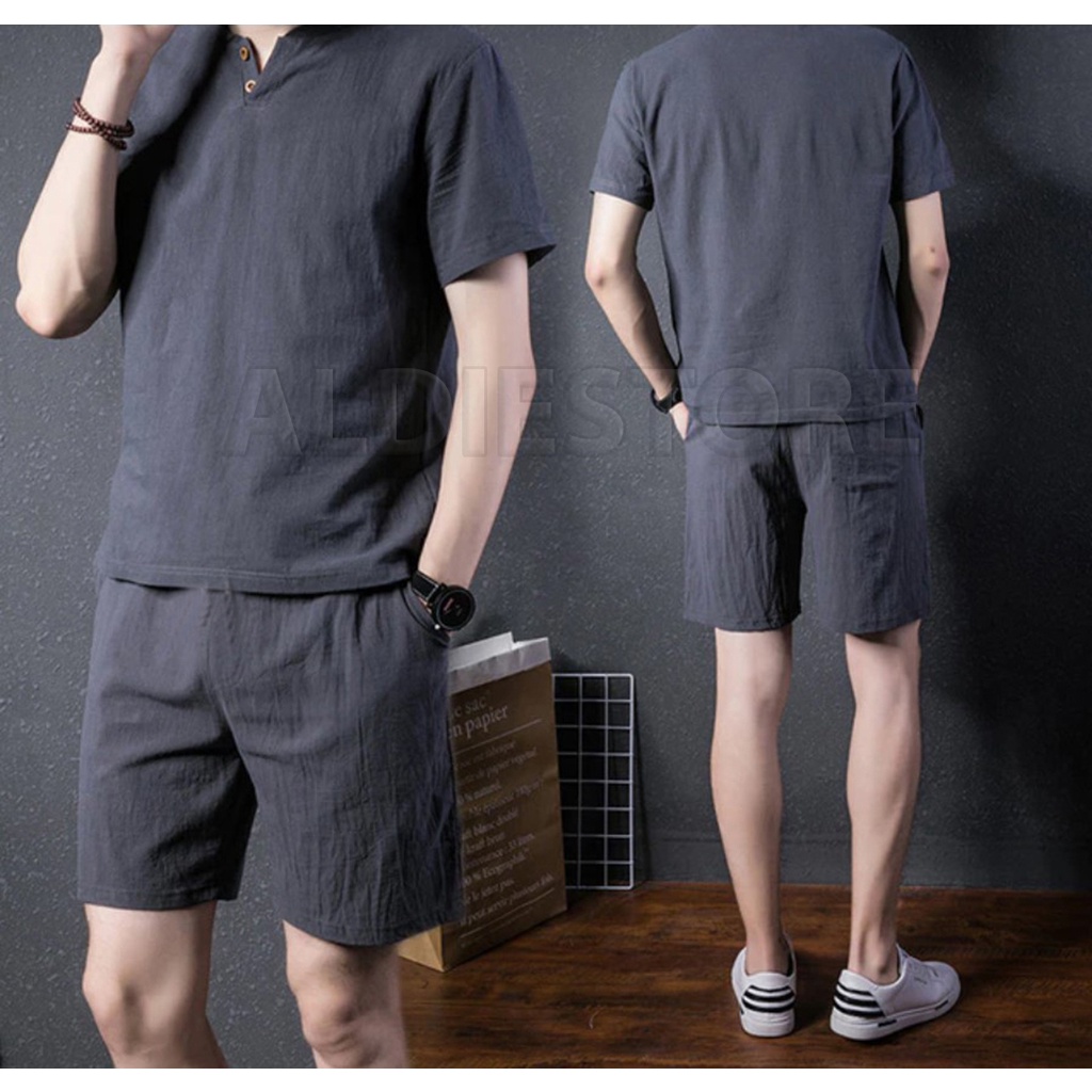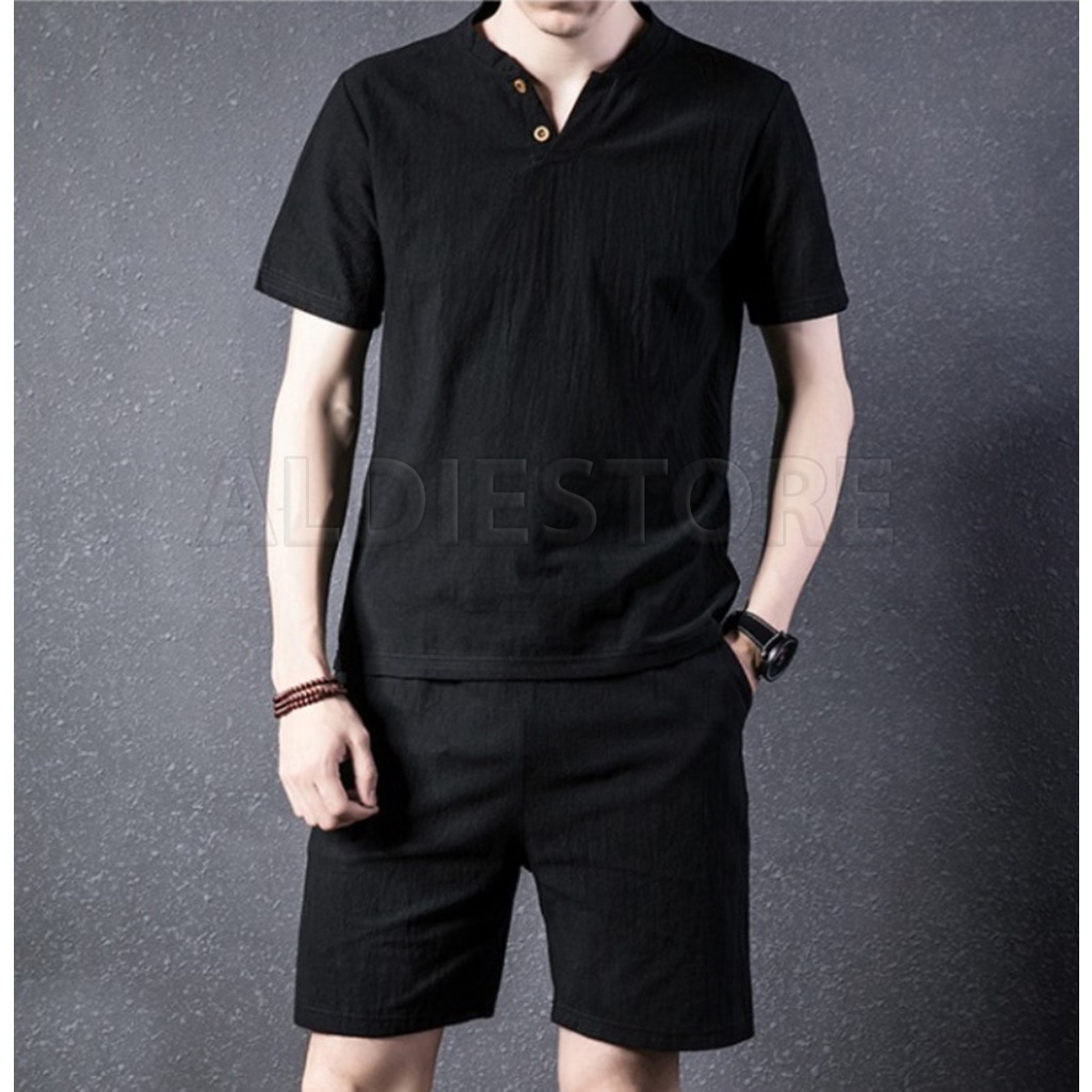 Setelan Pria Dewasa AMOND Warna Hitam Polos Setelan Kaos dan Celana Pendek Distro Terbaru