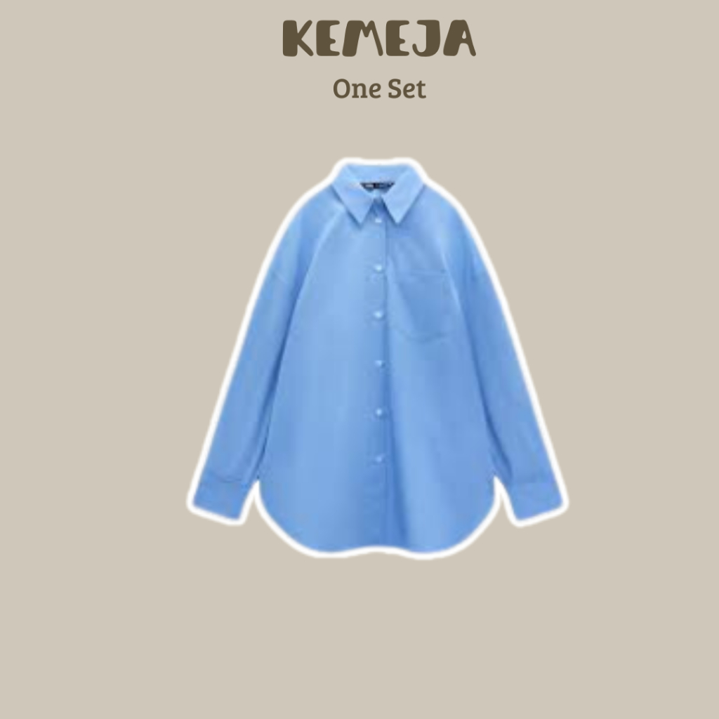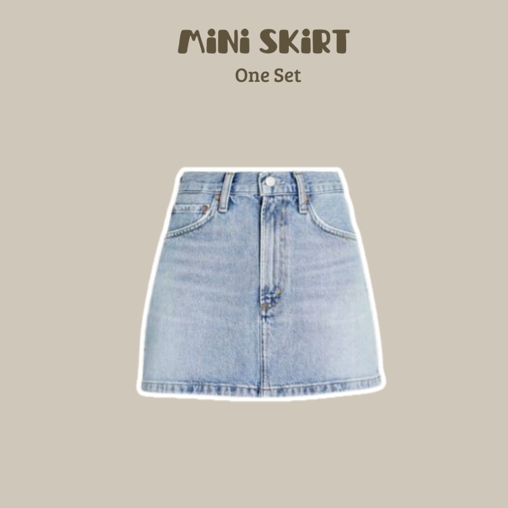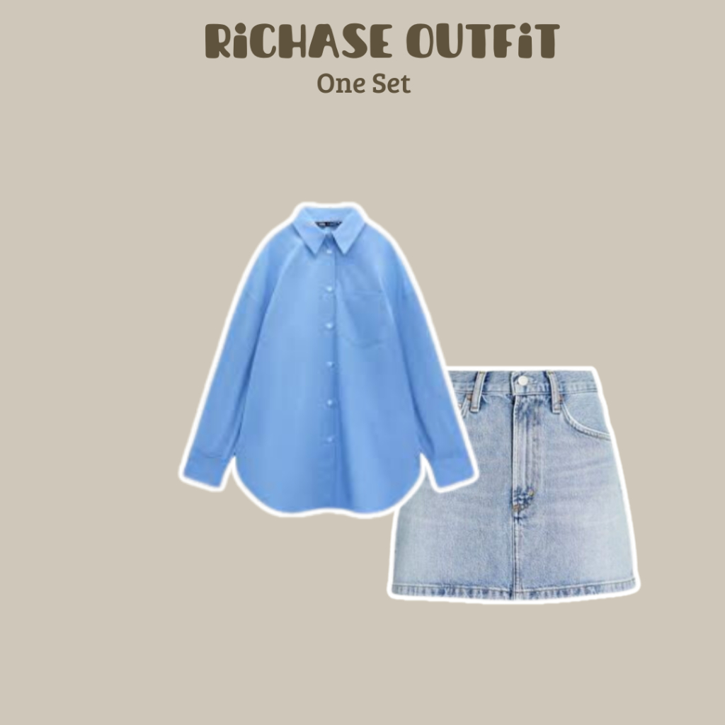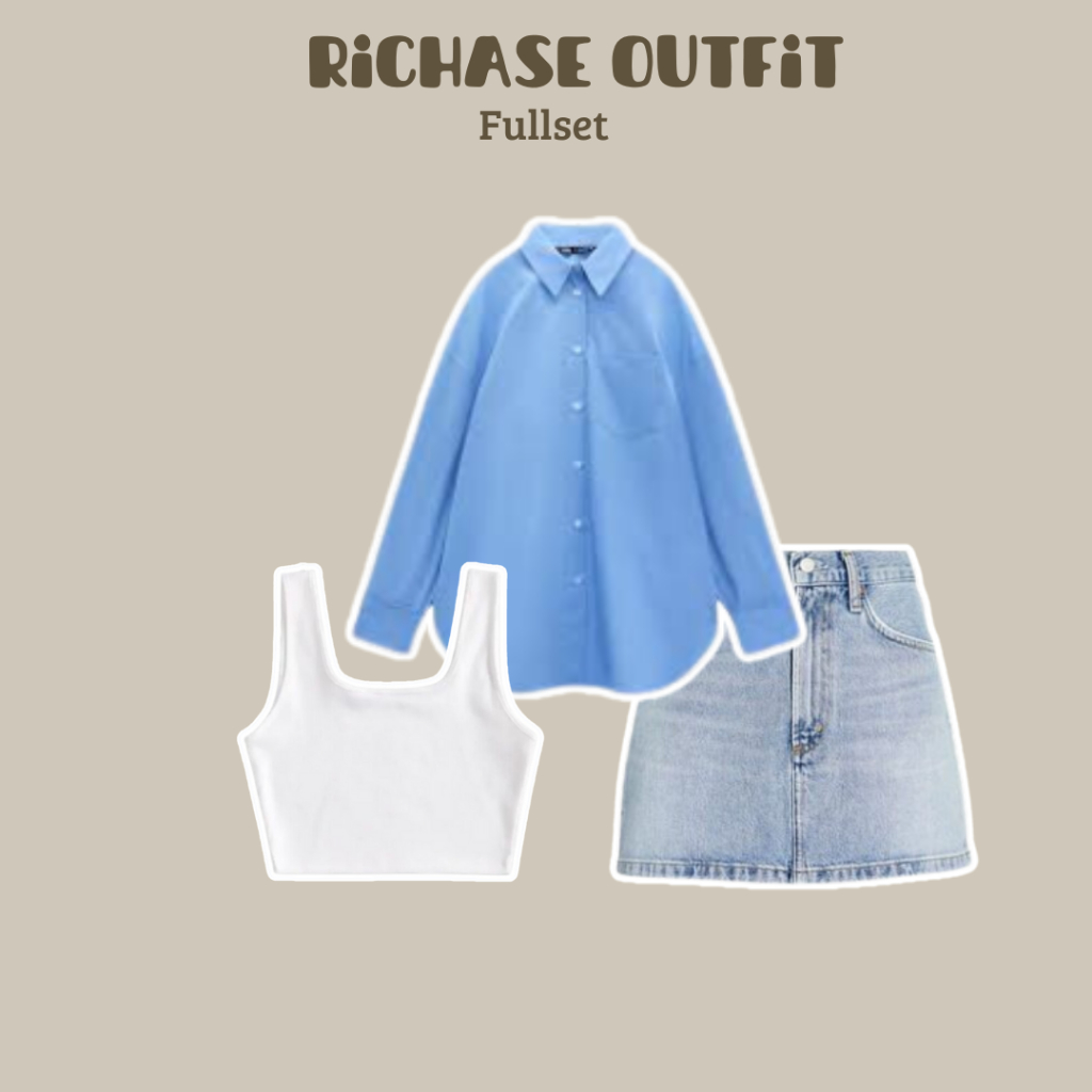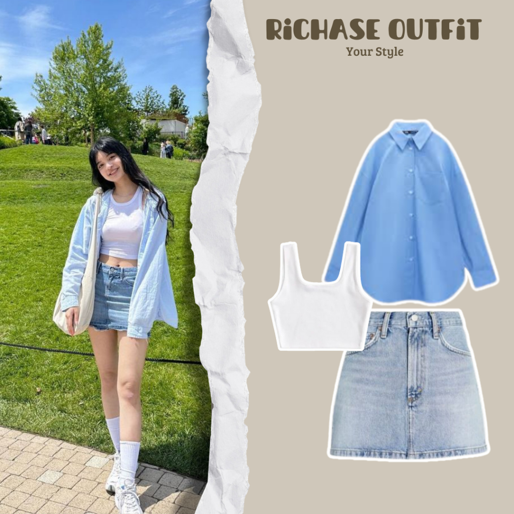 Setelan Richase outfit {Kemeja Sky Blue+ Tanktop Putih +Rok Mini Jeans } | OneSet Korean Style
