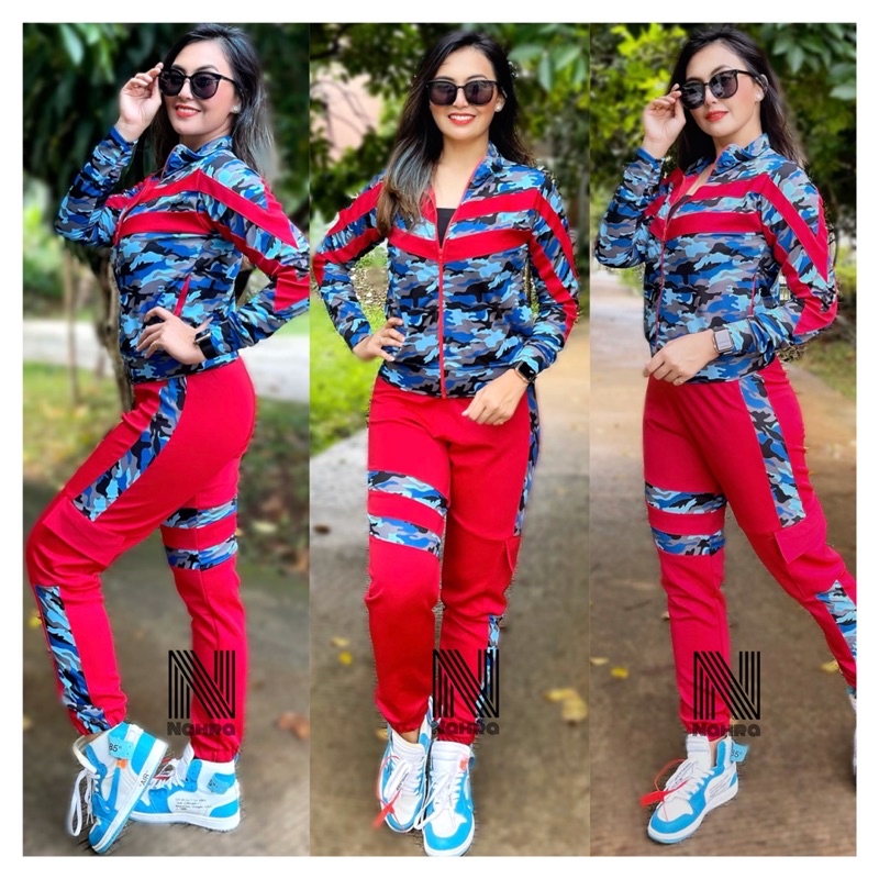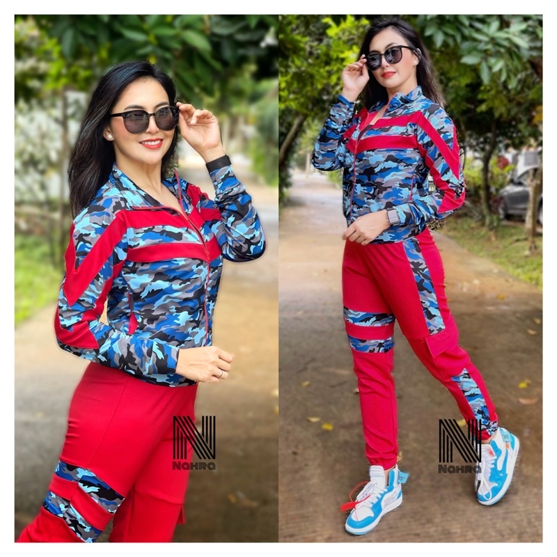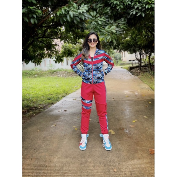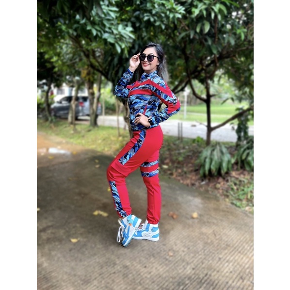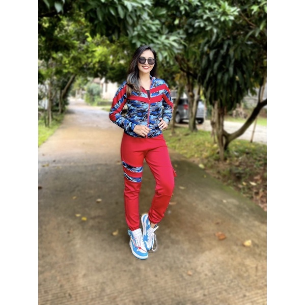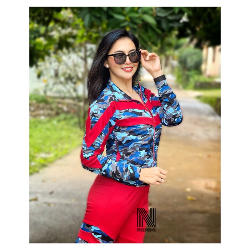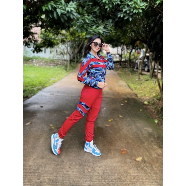 Setelan Senam Doble Cross V Merah Army Biru Jaket / Baju Olahraga Senam Aerobik Zumba Fitness Gym