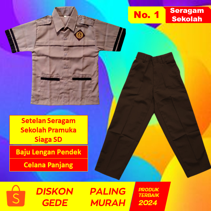 Setelan Seragam Pramuka Siaga SD Putra Baju Pramuka Lengan Pendek Lengan Panjang dan Celana Pramuka Panjang Seragam Sekolah