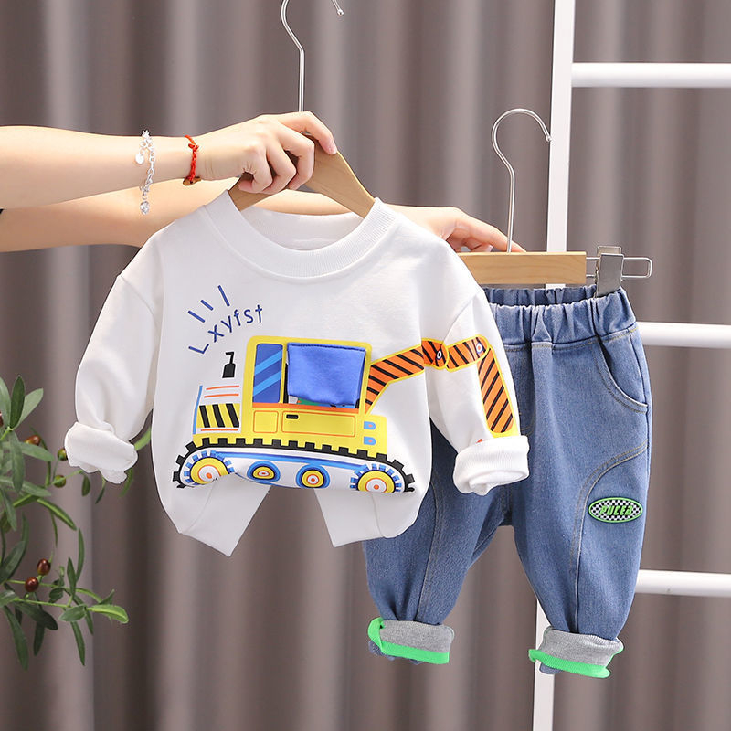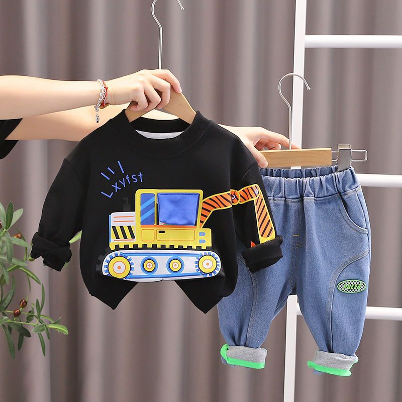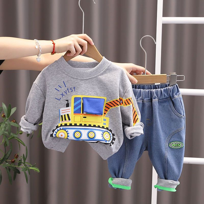 Setelan Sweater Anak Laki Laki Import Stelan Sweater Anak Balita Cowok Impor Sweater Gambar Truck Dino Lengan Panjang Dan Celana Jeans Panjang Lembut Anak