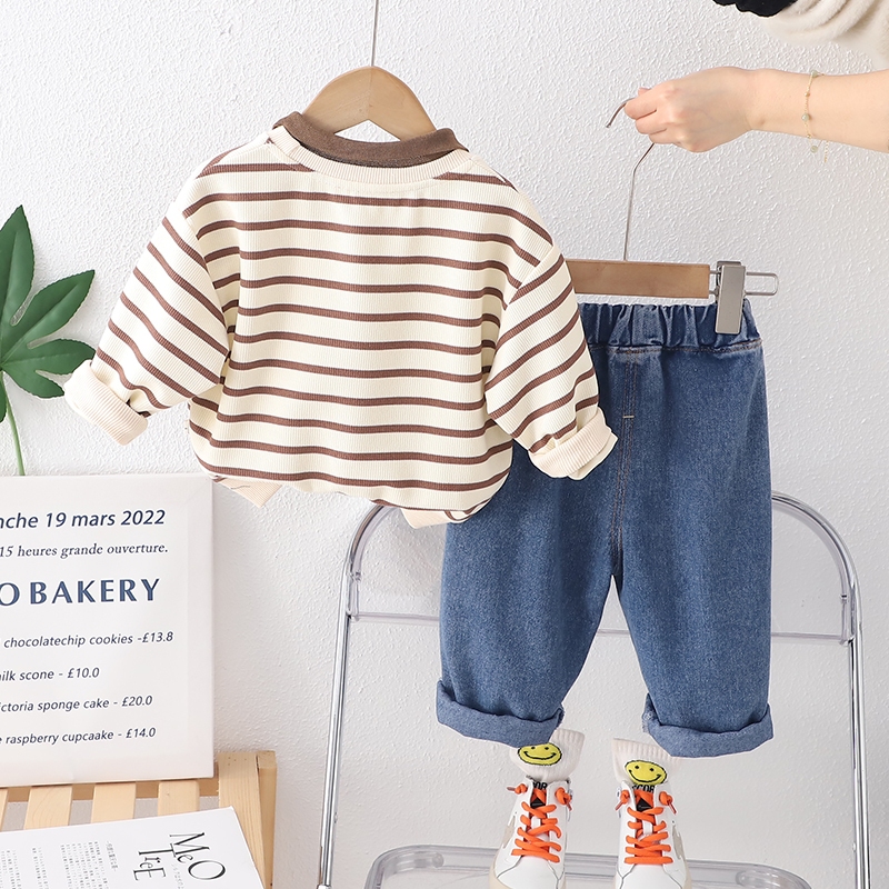 Setelan Sweater Anak Laki Laki Import Stelan Sweater Anak Balita Impor Sweater Motif Garis Garis Lengan Panjang Logo Huruf R Anak Cowok Cewek Unisex Setelan 2pcs Sweater Dan Celana Panjang