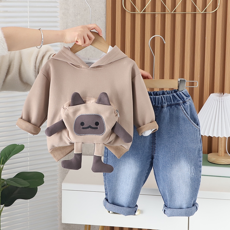 Setelan Sweater Anak Laki Laki Import Stelan Sweater Anak Balita Impor Sweater Motif Kantong Boneka 3D Anak Cowok Cewek Unisex Sweater Musim Dingin Setelan 2pcs Sweater Dan Celana Panjang Anak