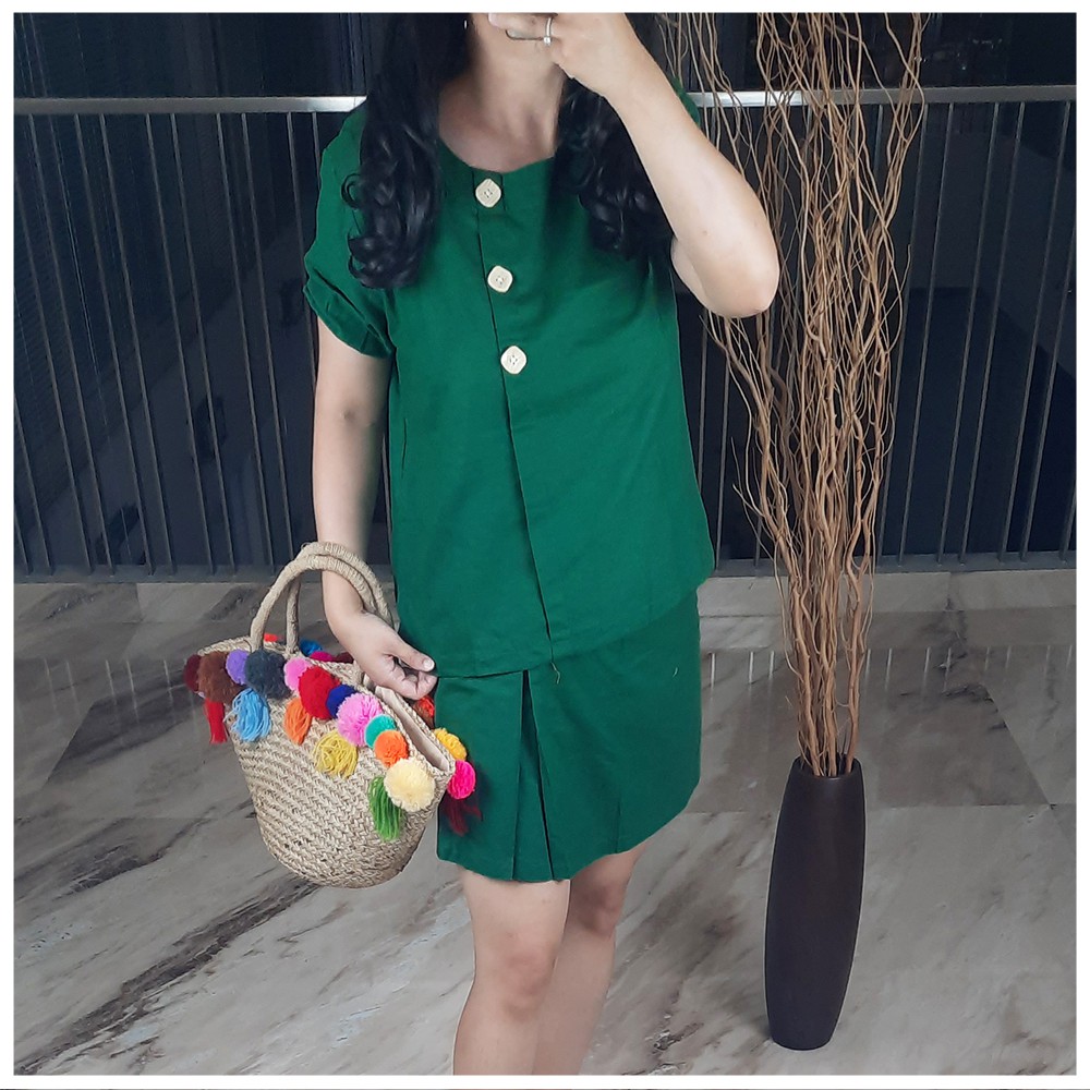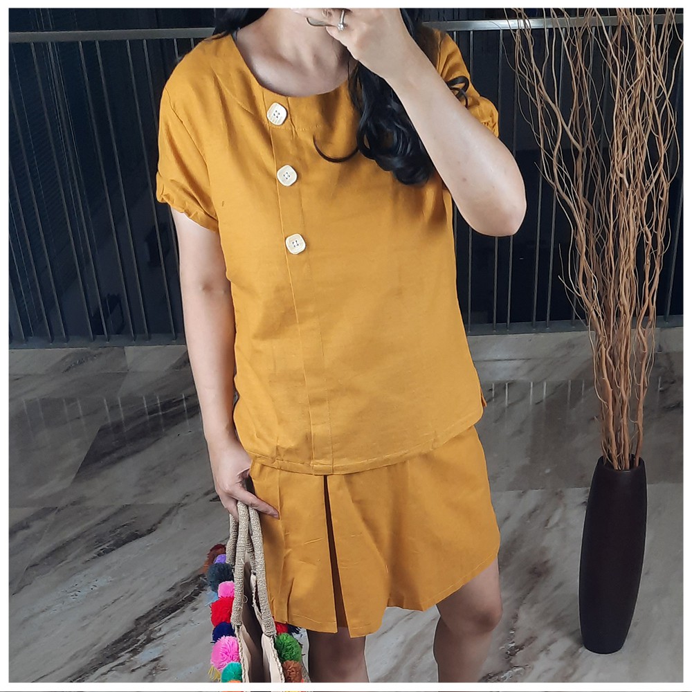 Setelan Wanita Setelan Linen Polos Casual - Rubi Skort Set