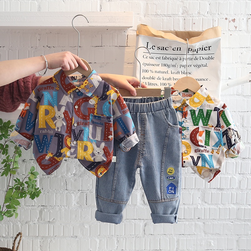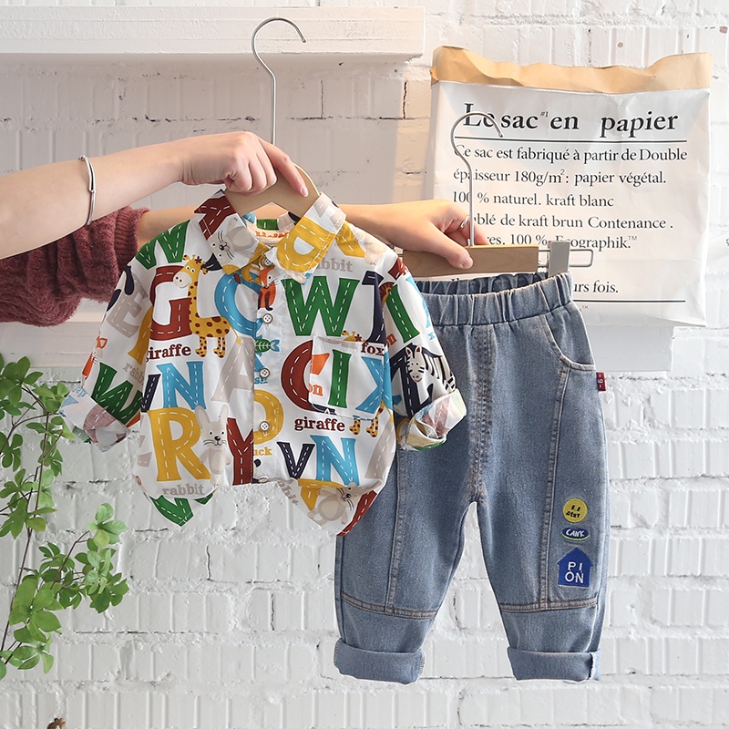 Setelan kemeja anak laki laki import kemeja anak cowok impor fashion anak laki laki celana panjang denim fashion import grosir impor