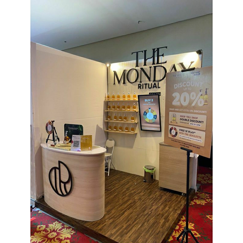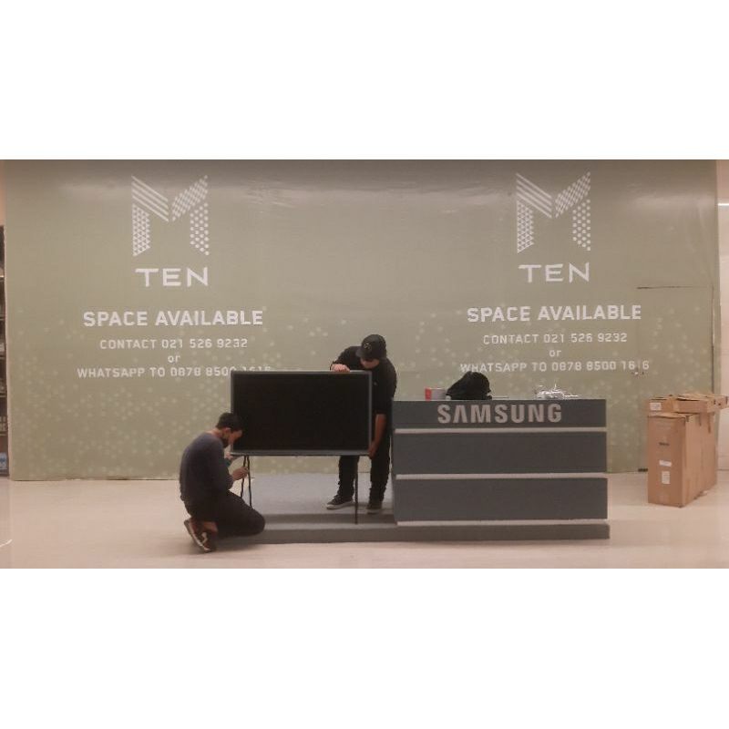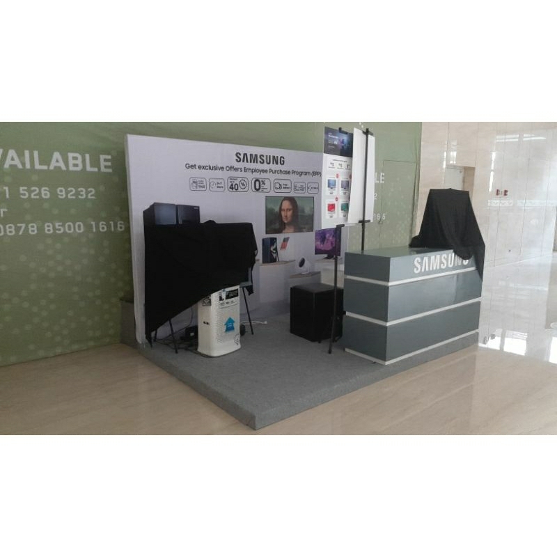 Sewa booth pameran, level backdrop