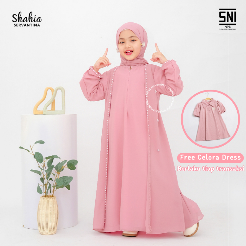 Shahia Servantina - [FREE GIFT] Delina Abaya Ceruty Tulle Set Dress Anak Perempuan Couple Mom & Kids