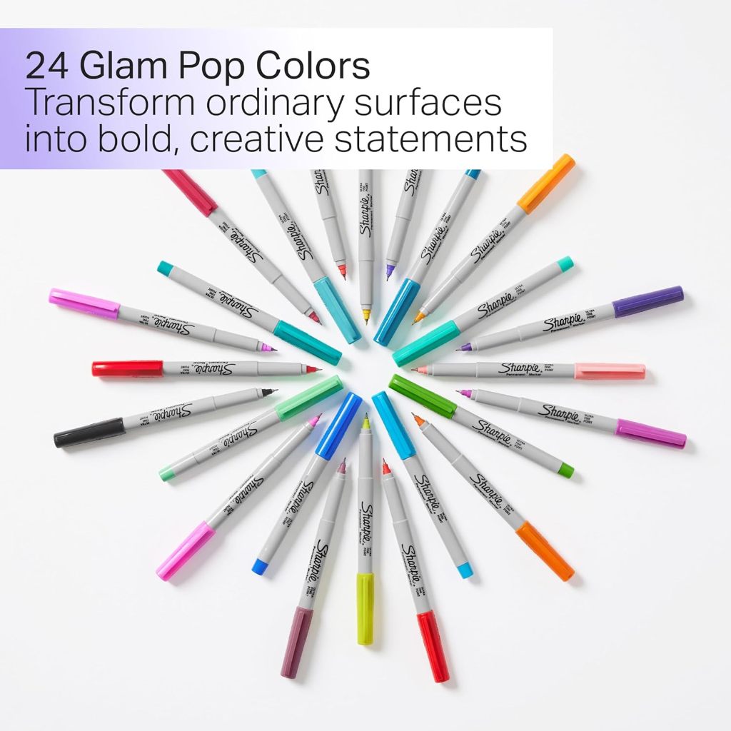 Sharpie Glam Pop Permanent Markers Set 24 pcs, ULTRA FINE TIP, 24 Count Spidol marker 24 warna