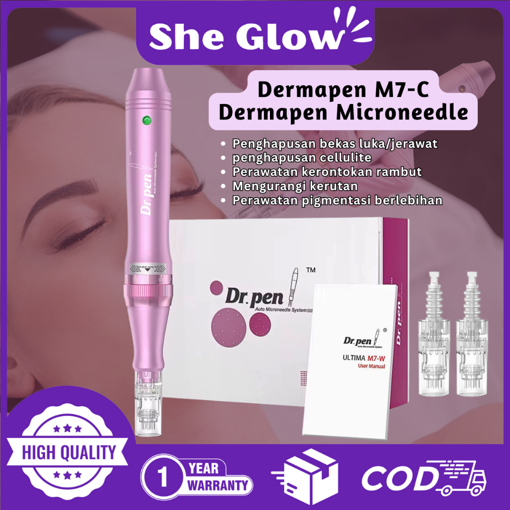 She Glow (GARANSI 1 TAHUN) Mesin Dr Pen Electric Dermapen Dr.pen M7-C Bb Glow Nano Wireless Electric Glow Sulam Alis, Acne Scar / Bopeng Sulam Bibir Dermapen Jarum