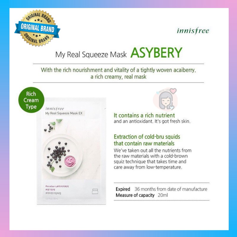 Sheet mask Innisfree My Real Squeeze Mask masker wajah